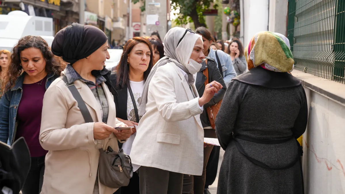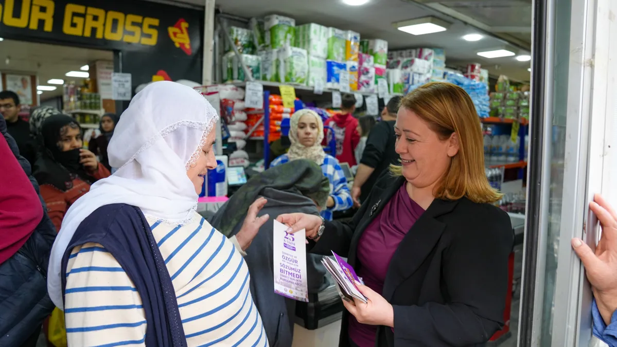 Açıklamanın ardından eşbaşkanlar ve tüm katılımcılar kadına yönelik şiddete karşı başvurulacak mekanizmaların yer aldığı broşürler ve Alo Şiddet Hattı’nın numarasının bulunduğu stickerler dağıttı.
