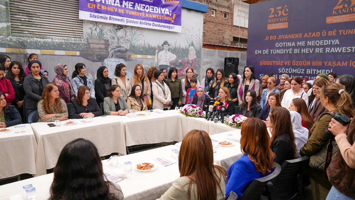 Bağlar Belediyesi, Diyarbakır Büyükşehir ve ilçe belediyeleri, 25 Kasım Kadına Yönelik Şiddete Karşı Uluslararası Mücadele ve Dayanışma Günü etkinliklerini startını verdi. Etkinlikler, “Şiddetsiz ve özgür bir yaşam için sözümüz bitmedi şiddeti birlikte durduracağız” sloganıyla düzenlenecek. Start için Bağlar Belediyesi Kadın Politikaları Müdürlüğüne bağlı Rojin Kabaiş Dayanışma Merkezi’nde basın açıklaması yapıldı. Açıklamaya Bağlar Belediyesi Eşbaşkanı Leyla Ayaz, Eşbaşkan Yardımcısı Jiyan Aslan, belediye eşbaşkanları, Meclis üyeleri, Kadın Politikaları Müdürlükleri, belediyelerin Kadın Meclisleri, kadın kurumlarından temsilciler ile çok sayıda kadın katıldı.