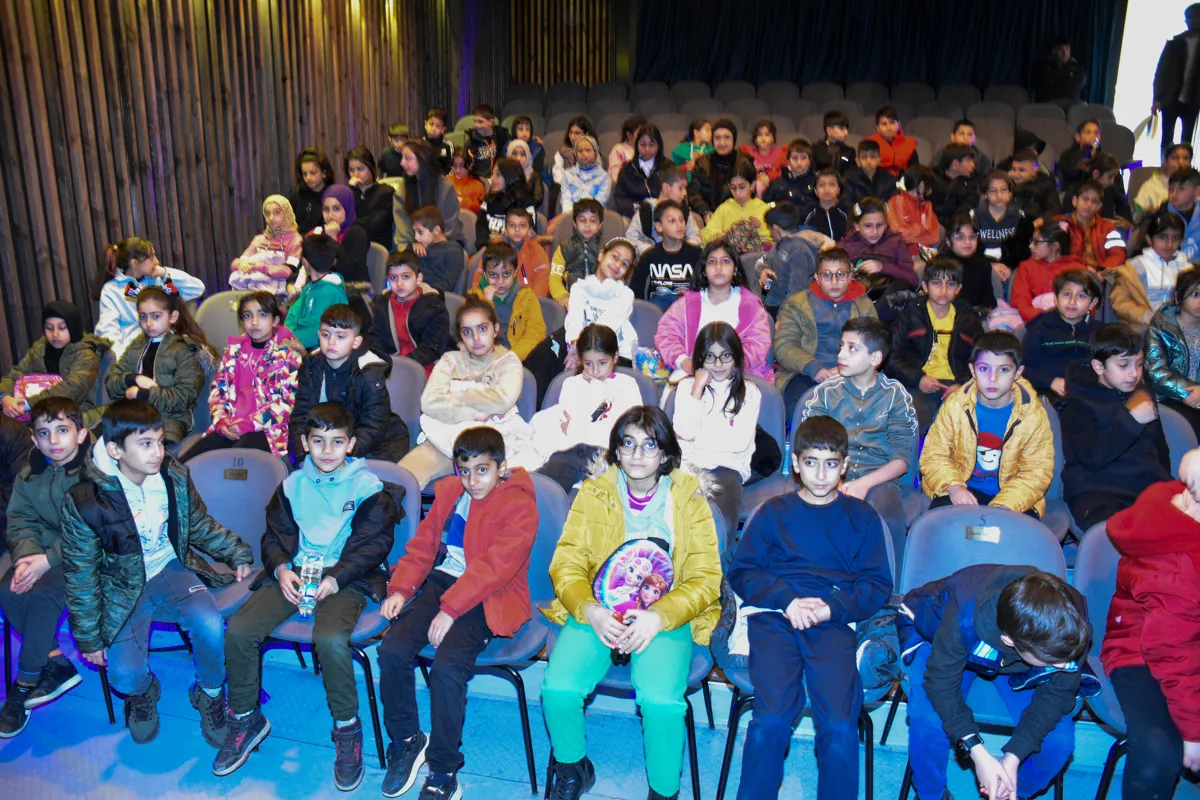 Zarokên ku li Pirtûkxaneya Giştî ya Ferzad Kemanger, ku bi Rêveberiya Çand û Karûbarên Civakî ve girêdayî ye, perwerde dîtin, bi hev re lîstikek şanoyê temaşe kirin.
