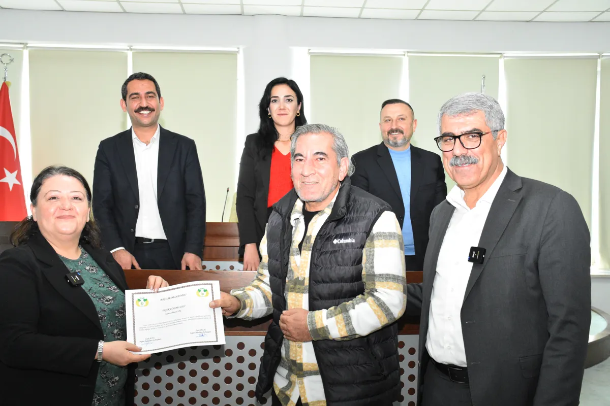 Piştî axaftinê, karmend yek bi yek hatin vexwendin ser dikê û sertîfîkaya spasdariyê pêşkêşî wan hat kirin.