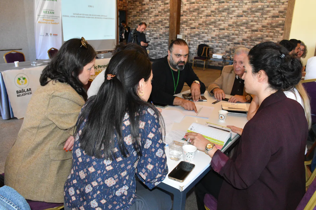 Sunumların ardından 8 masada çalışma grupları oluşturularak atölye düzenlendi. Atölyeye Kaynartepe Mahallesi’nden yurttaşlar da katıldı. Çalışma gruplarına Bağlar’a ilişkin 6 soru yöneltilerek bu sorular üzerinde çözüm önerileri istendi. Tüm gruplar yaptıkları tartışmaların ardından sorulara yanıt verdi.