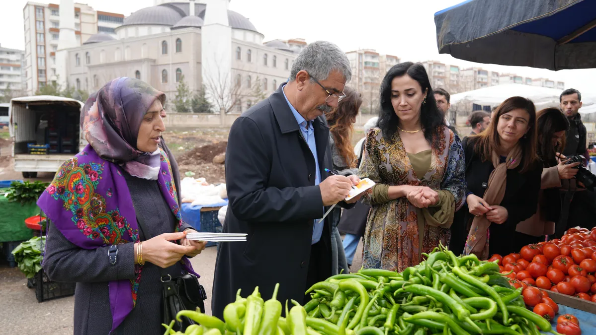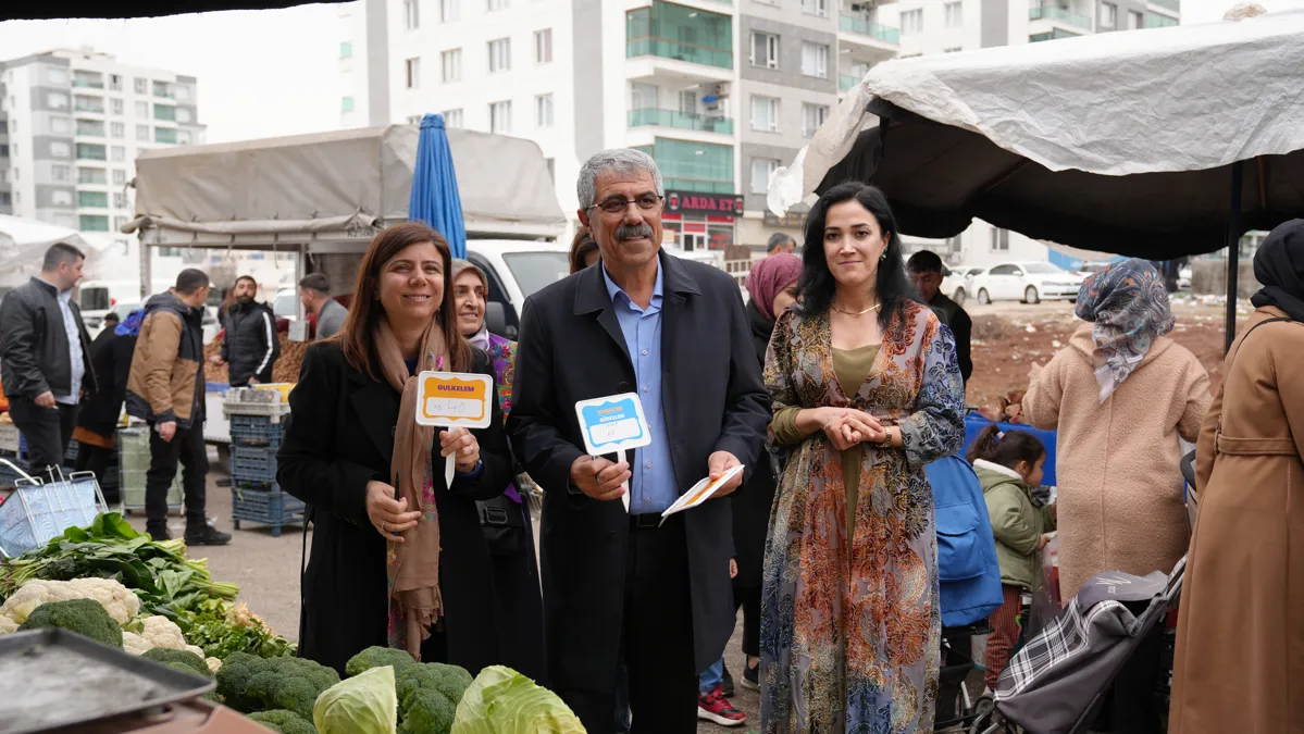 Bağlar Belediyesi Eşbaşkanları Leyla Ayaz ve Siraç Çelik, Diyarbakır Büyükşehir Belediyesi Eşbaşkanı Serra Bucak ile birlikte pazar esnafını ziyaret ederek anadilin önemine dikkat çekti.