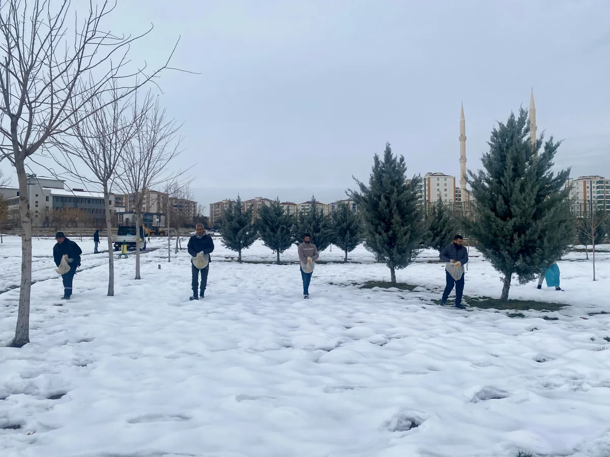 Bağlar Belediyesi Park ve Bahçeler Müdürlüğüne bağlı ekipler, toprağın soğuktan etkilenmemesi için park ve yeşil alanlarda gübreleme çalışması yürütüyor.