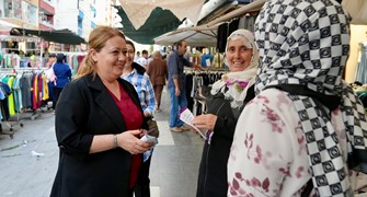 Bağlar Belediyesi Eşbaşkanı Leyla Ayaz, esnaf ziyaretleri kapsamında Mevlana Halit Mahallesi'nde semt pazarını ziyar