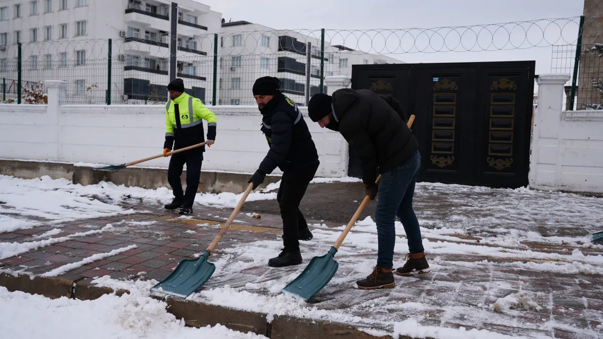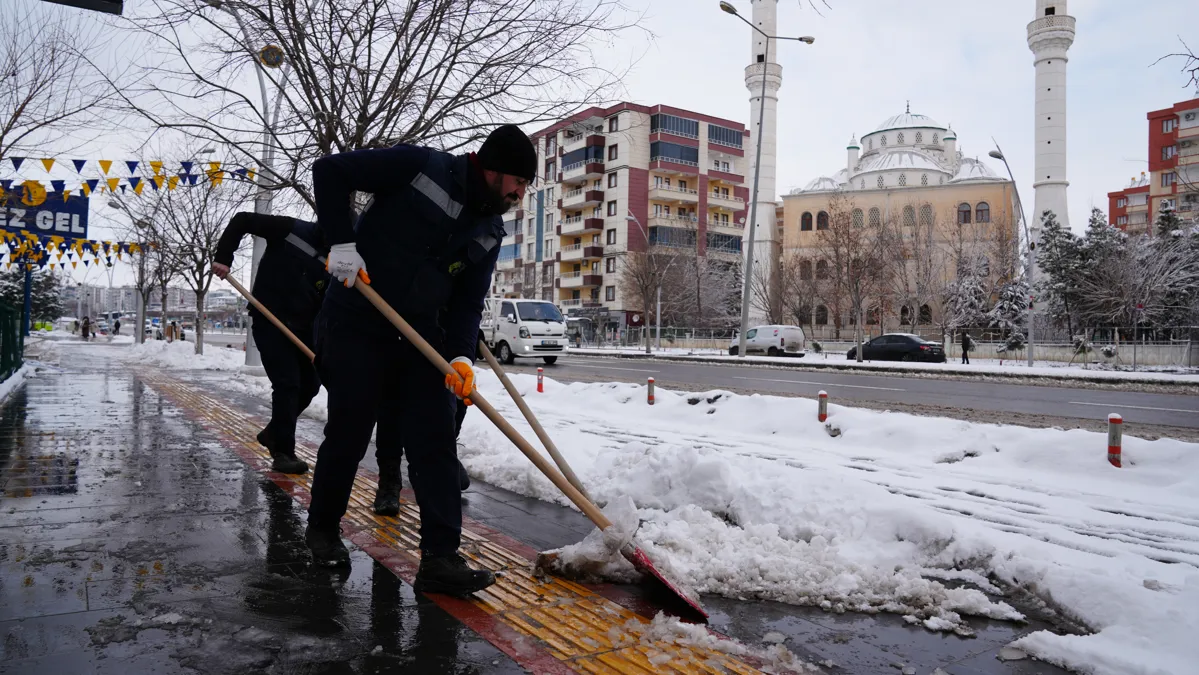 Zabıta Müdürlüğüne bağlı ekipler de halkın ulaşımını rahatlıkla sağlaması için sahada. 32 kişilik ekiple sahada olan Zabıta Müdürlüğü, kaldırımlarda kar temizleme, kar küreme işlemleri yürüterek ulaşımı sağlıyor.