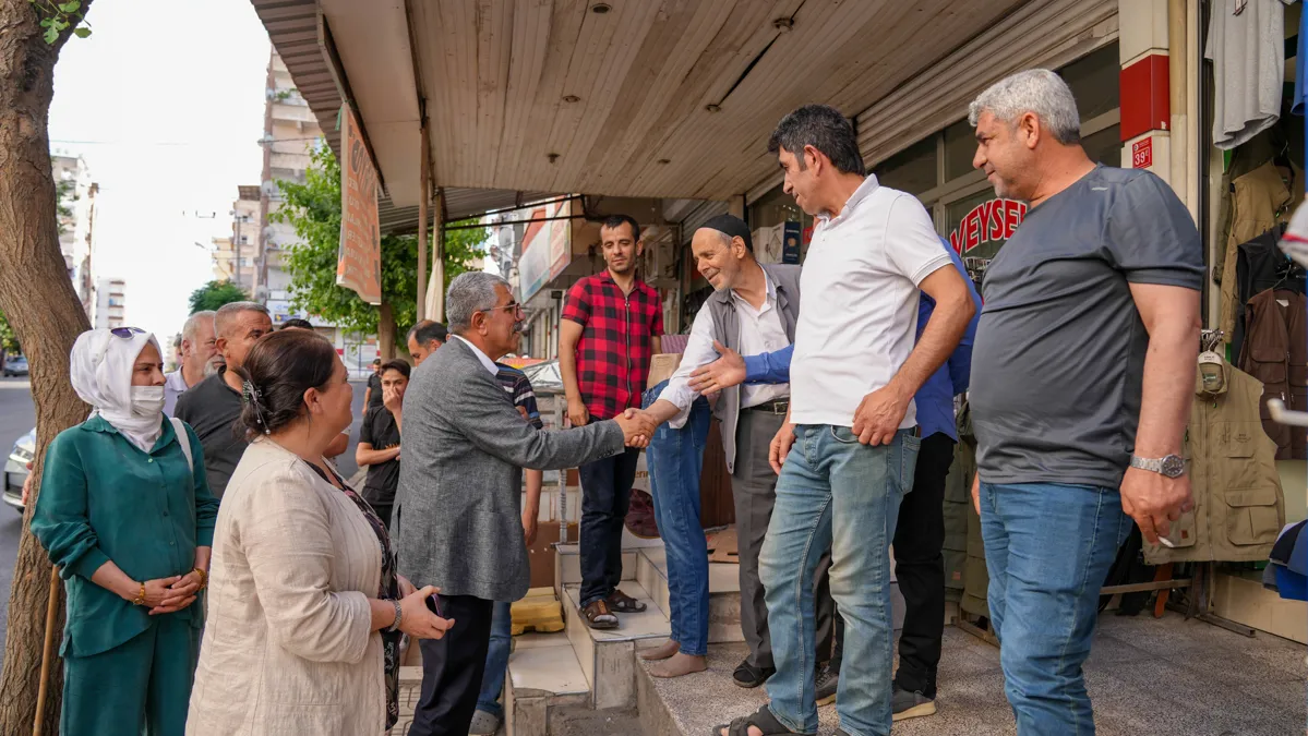 Bağlar Belediyesi Eş Başkanları Leyla Ayaz ve Siraç Çelik, Cengizler Caddesi’nde asfalt çalışmasını inceledi, esnafla bir araya geldi.