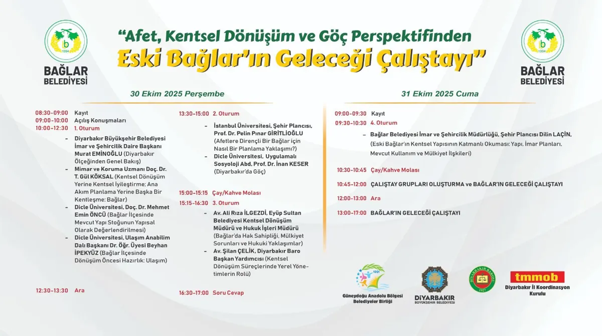 Bağlar Belediyesi, 6 Şubat 2023'te meydana gelen depreminin de etkisiyle Eski Bağlar’da gittikçe derinleşen imar ve kentleşme sorunlarına çözüm bulmak amacıyla önemli bir çalıştay düzenliyor. “Afet, Kentsel Dönüşüm ve Göç Perspektifinden Eski Bağlar’ın Geleceği” başlığıyla düzenlecek çalıştayda alanında uzman konuklarla kentsel iyileştirme, deprem dirençli kentler, mekânsal dönüşüm ve afet sonrası yeniden yapılanma gibi birçok başlıkta sunumlar ve tartışmalar yürütülecek.