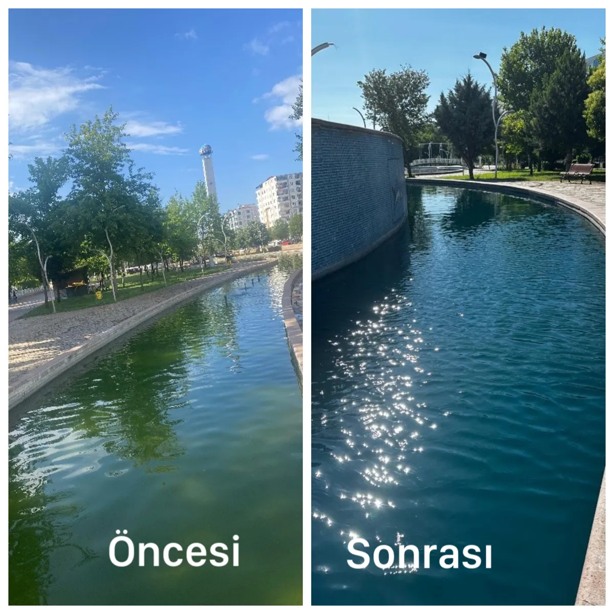 Bağlar Belediyesi Park ve Bahçeler Müdürlüğü, yaz aylarına başlarken Göletli Park’ta kapsamlı bir çalışma yaptı. Ekipler süs havuzunda, organik havuz kimyasalları ile temizlik yaptı. Su berraklaşırken, rahatsız edici kokunu ve haşere gibi olumsuz durumların önüne geçti.