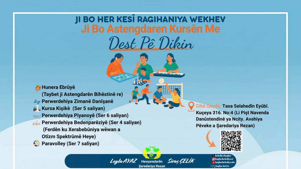 Bağlar Belediyesi Engelli ve Yaşlı Hizmetleri Müdürlüğü tarafından engelli bireyler için kurslar düzenlenecek. Kursalara katılım sağlamak isteyenler için kayıtlar başladı.