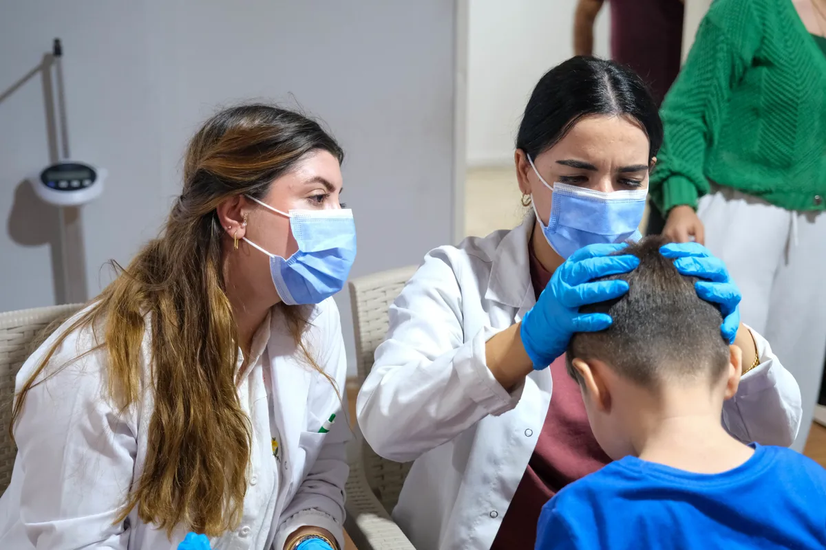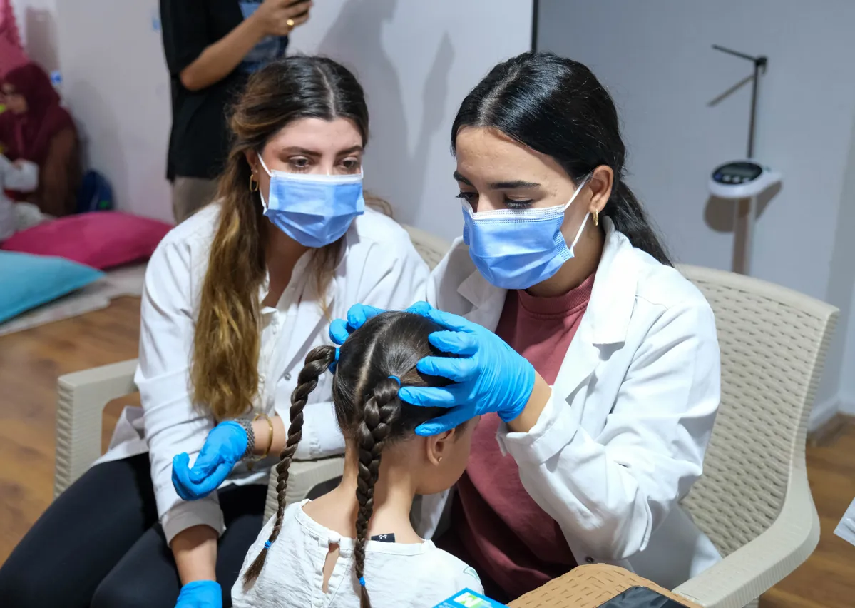 Aynı zamanda bölgede artan bit salgını nedeniyle tarama yapan sağlık emekçileri, çocukları büyüme gelişme geriliği açısından da muayene etti.