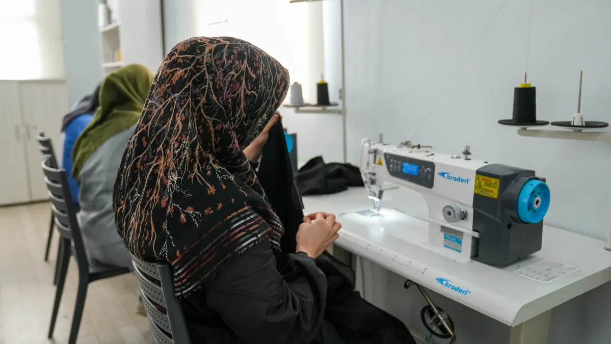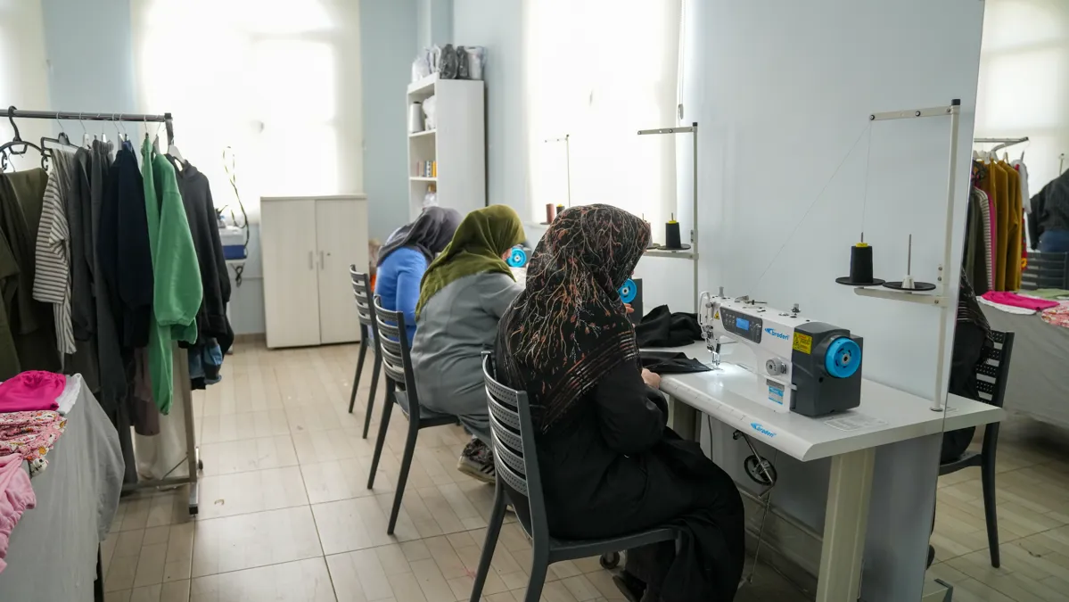Tasarım atölyesine katılan ve burada büyük bir emek veren kadınlar, mesleği öğrenirken aynı zamanda birlikte üretmenin, birlikte güçlenmenin ve kolektif emeğin deneyimini yaşıyor.