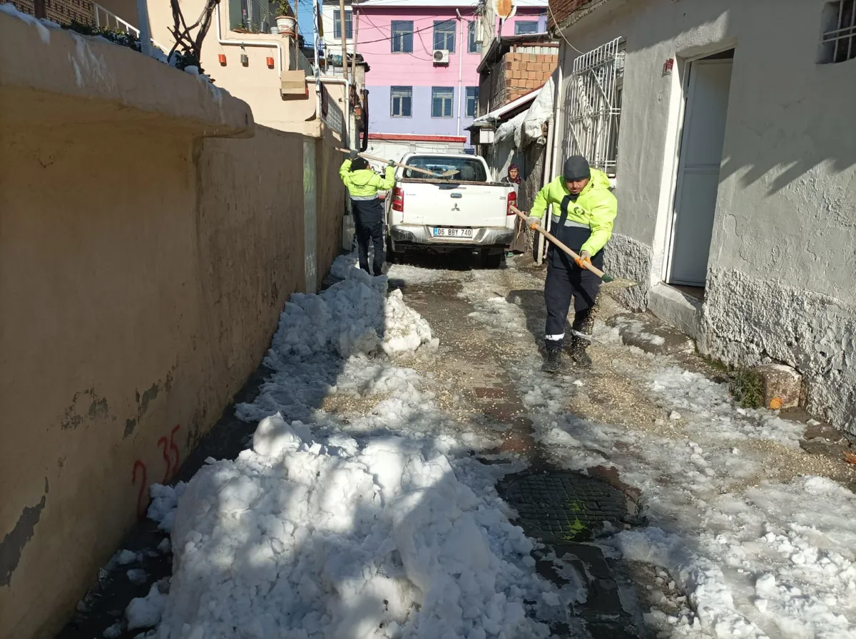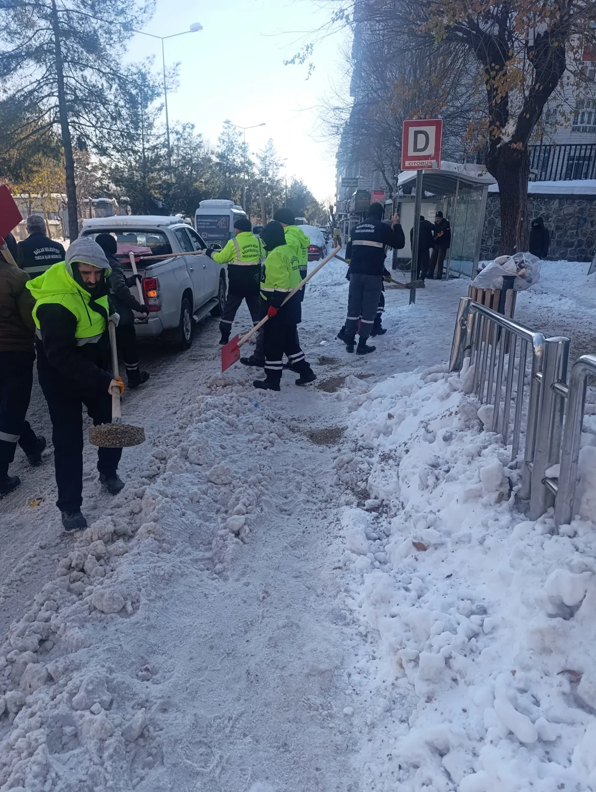 Kentte hakim olan kar yağışıyla birlikte çalışmalarına 6. Gününde devam eden ekipler şehir merkezinde tüm mahallelerde çalışmaları sürdürüyor. Tüm cadde ve sokaklarda, parklarda, kaldırım ve yaya geçitlerinde, ara sokaklarda kar temizleme ve tuzlama işlemleri devam ediyor.