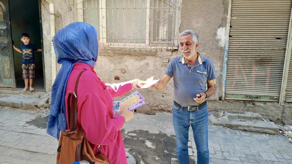 Bağlar Belediyesi, Katılımcı Bütçe Bağlar Modeli kapsamında pilot bölge olarak belirlenen iki mahalleden biri olan Kaynartepe’de halk buluşması öncesi yoğun bir hazırlık içinde. Katılımcı Bütçe toplantıları kapsamında 3. kez Kaynartepe halkıyla bir araya gelinecek. “Tartışma ve Ortak Müzakere” başlığıyla düzenlenecek buluşmaya dair saha ekipleri de sokak sokak, ev ev yurttaşlara ulaşıyor. Saha ekibi, mahallede birebir bilgilendirme yaparak, broşürler dağıtıyor ve halkı davet ediyor.
