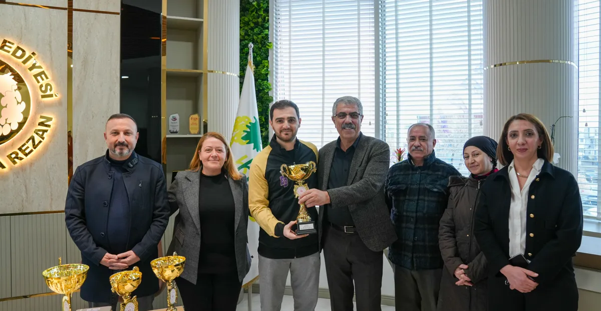 Büyük başarılara imza atan sporcular kupalarıyla birlikte Eşbaşkanlar Leyla Ayaz ve Siraç Çelik’i ziyaret etti.