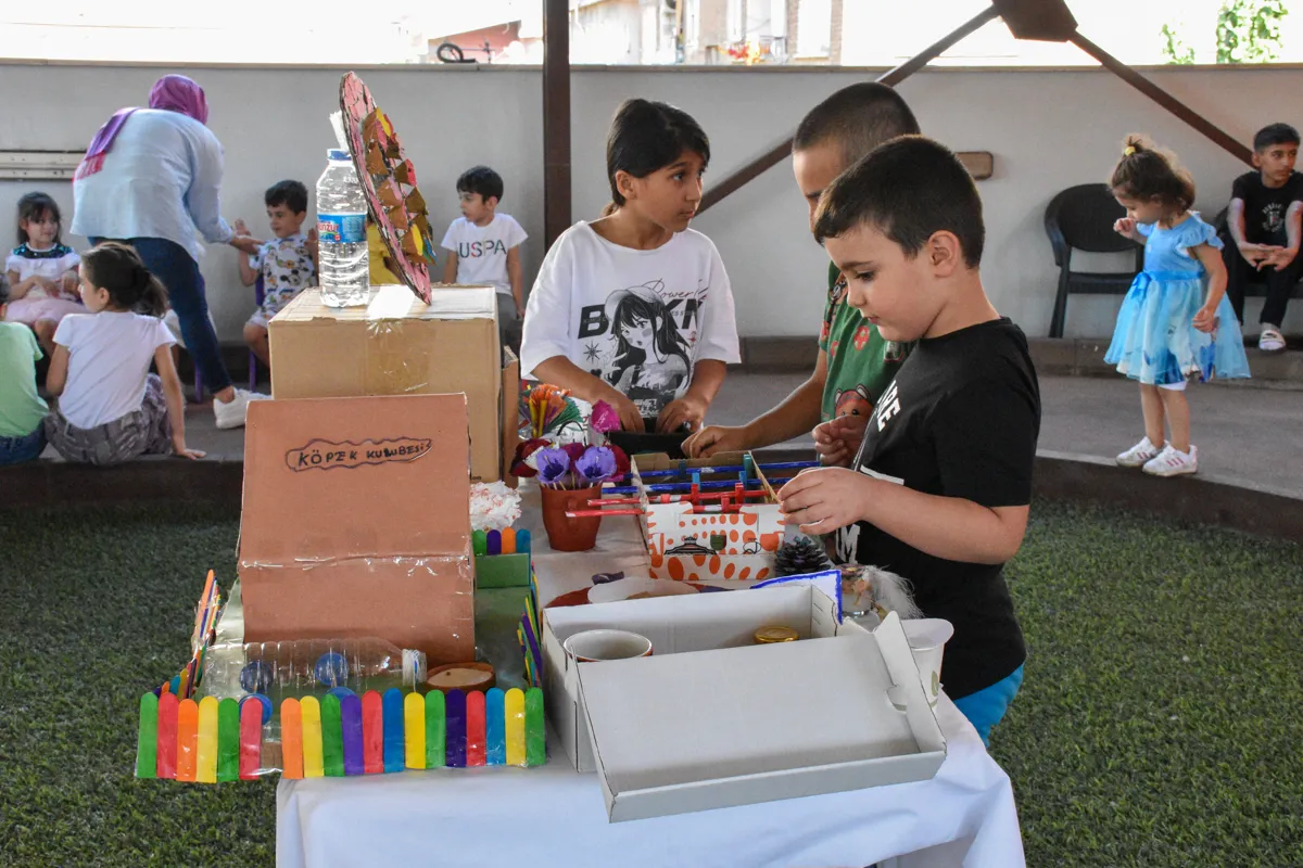 Çocuklar sahne alarak yaz boyunca öğrendikleriyle renkli etkinlikler yaptı.