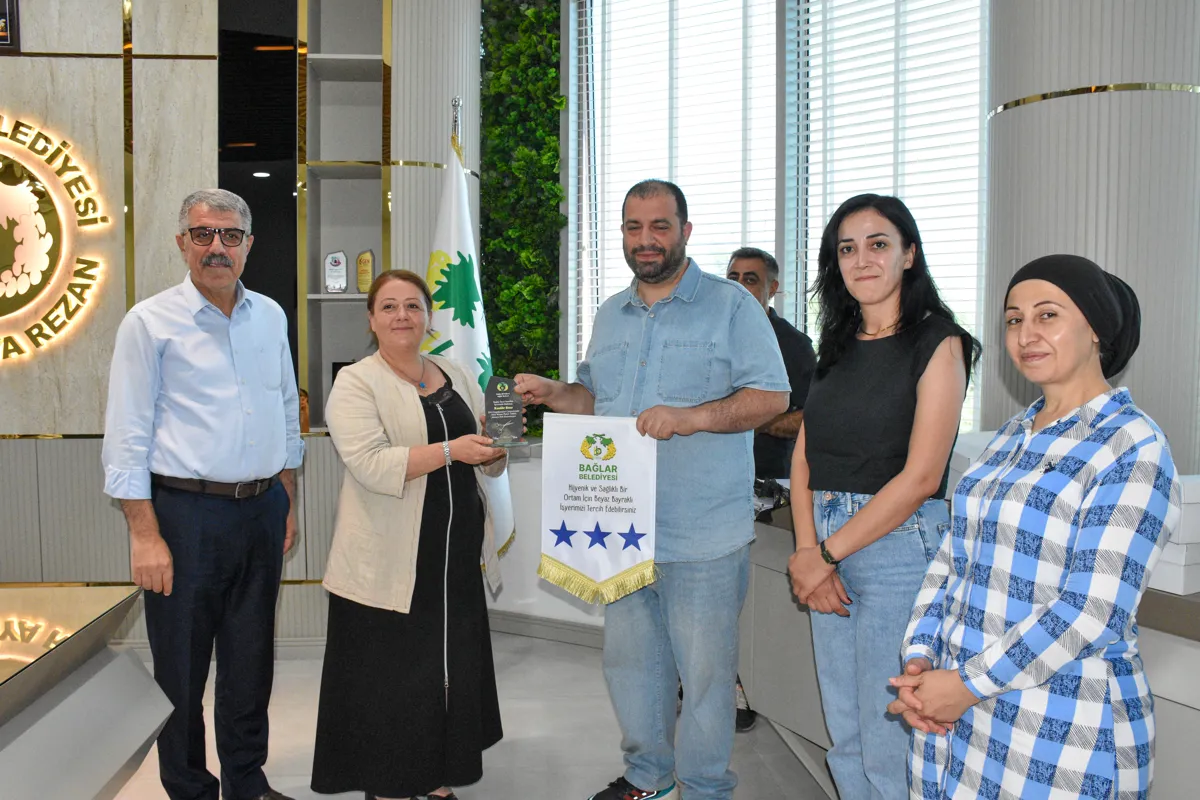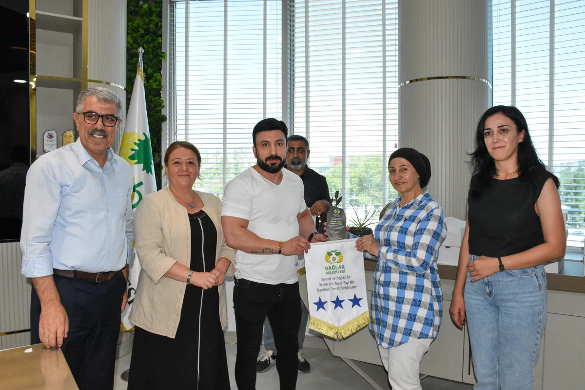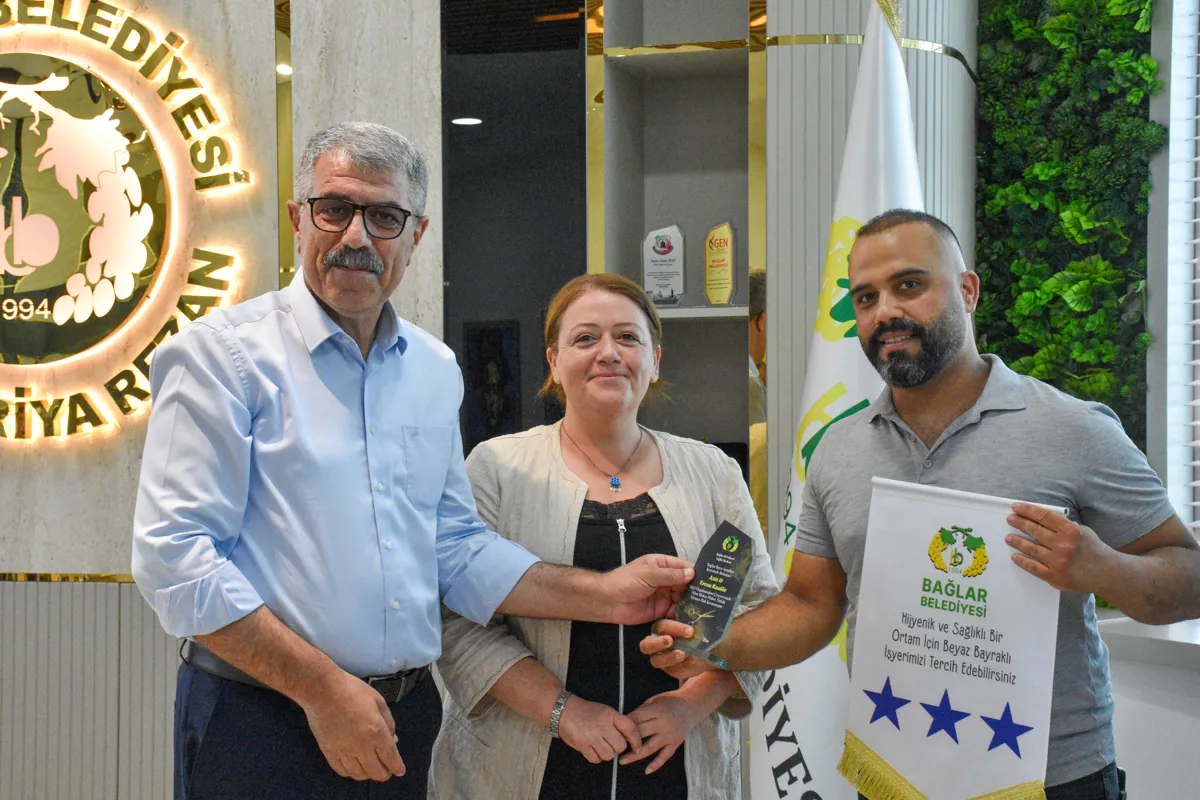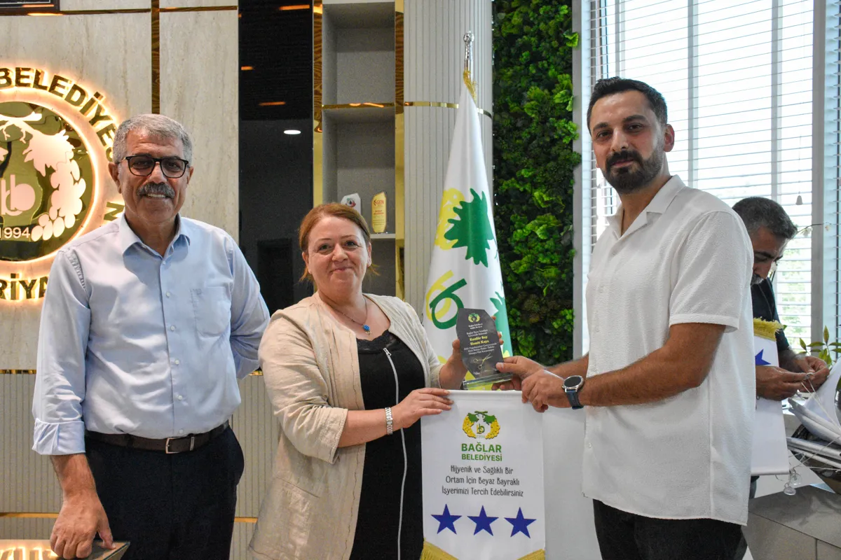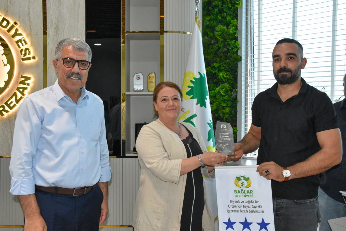 Bağlar Belediyesi Sağlık Merkezi’nin hayata geçirdiği “Beyaz Bayrak ve Altın Makas” projesi ile kuaför, berber, kişisel bakım ve cilt bakımı yapan iş yerleri denetlendi. Standartlara özenle uyan işletmelere “Beyaz Bayrak ve Altın Makas” plaketi verildi. Plaketler Belediye Eşbaşkanları Leyla Ayaz ve Siraç Çelik tarafından takdim edildi.