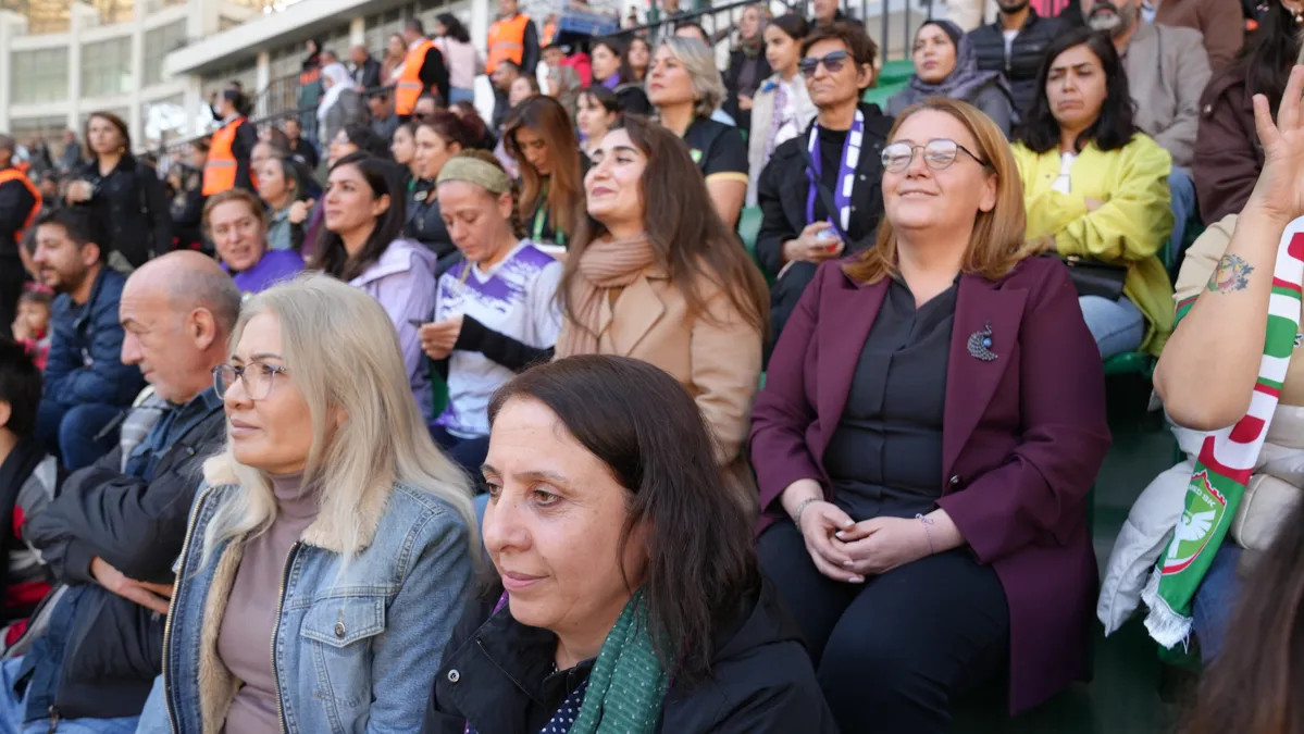 Bağlar Belediyesi Eşbaşkanı Leyla Ayaz, Amedspor-Trabzonspor kadın futbol takımlarının karşılaşmasını tirbünde kadınlarla birlikte izledi. Maç boyunca kadına yönelik şiddete karşı mücadele mesajları verildi.