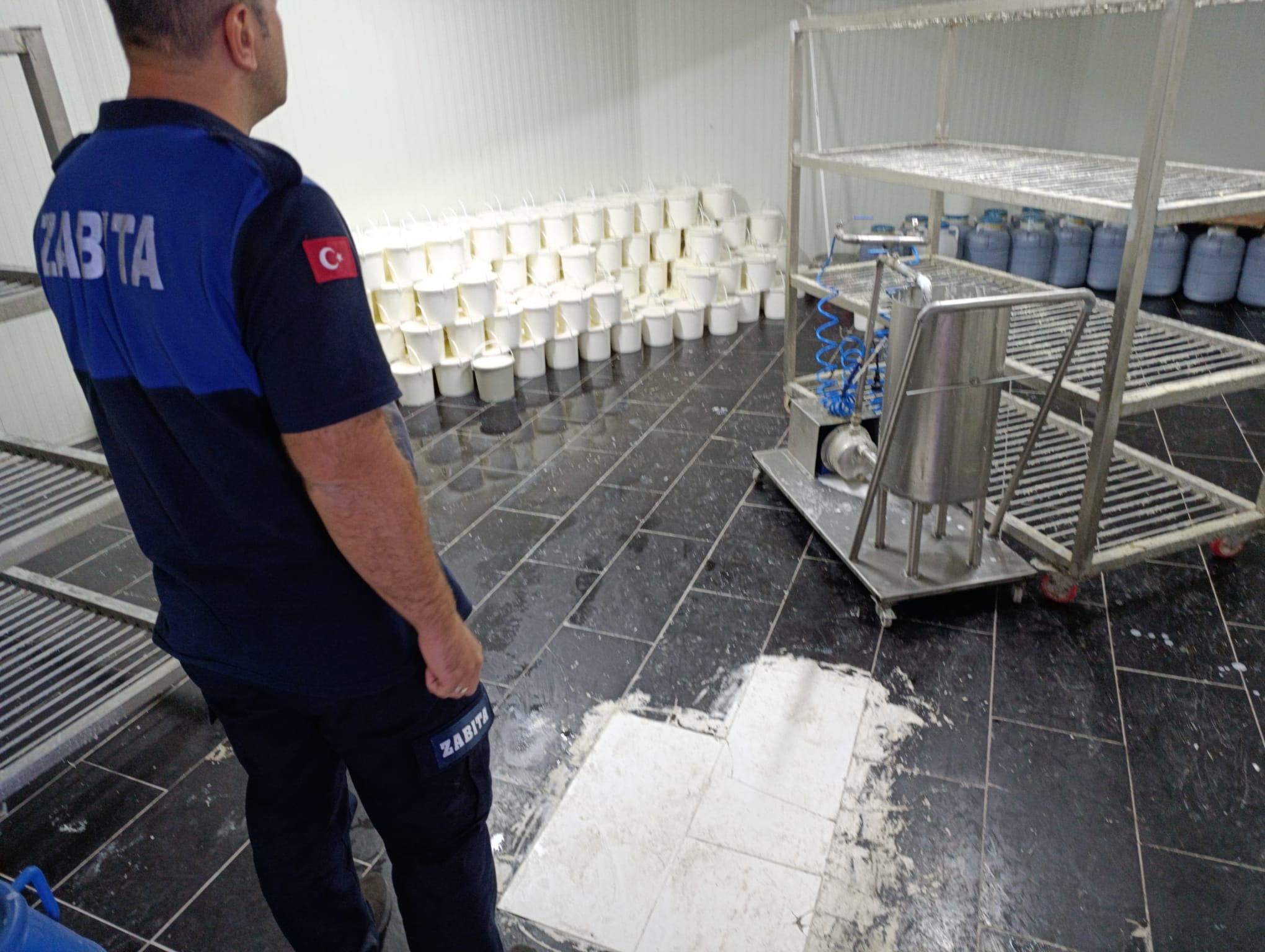 Ekipler, 426 kova yoğurt, 1500 litre süt, 350 kilogram süt tozu, 240 kilogram margarin olmak üzere toplamda 3747 kilogram ürüne el koydu.