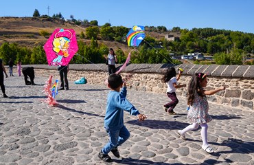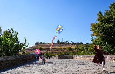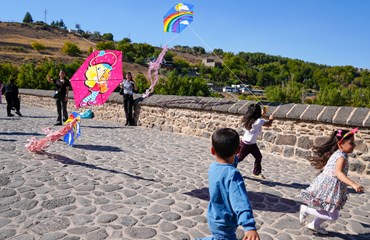 Bağlar Belediyesi çocuklar için çalışmalarına devam ediyor. Çocuklar, Dünya Çocuk Günü dolayısıyla tarihi On Gözlü Köprü'de uçurtma uçurdu.