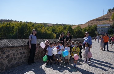 Bağlar Belediyesi Kadın Politikaları Müdürlüğüne bağlı Narin Çok Amaçlı Çocuk ve Aile Merkezinde oyun odasına katılan çocuklar için renkli bir etkinlik düzenlendi. Dünya Çocuk Günü dolayısıyla tarihi On Gözlü Köprü'ye gelen çocuklar, burada önce köprünün adını ve tarihini öğrendi. Ardından ellerindeki balonları gökyüzüne bıraktı. Çocuklar uçurtma uçurarak gökyüzünü renklendirdi.