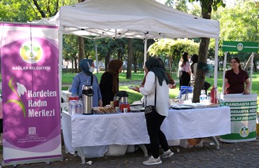 Bağlar Belediyesi Kadın Politikaları Müdürlüğüne bağlı Kardelen Kadın Merkezi’nde aşçılık kursuna katılan kadınlar, Kayapınar Belediyesi tarafından düzenlenen 2.Peyas Kadın Emek Buluşması ve Kültür Festivali’nde stant açtı.