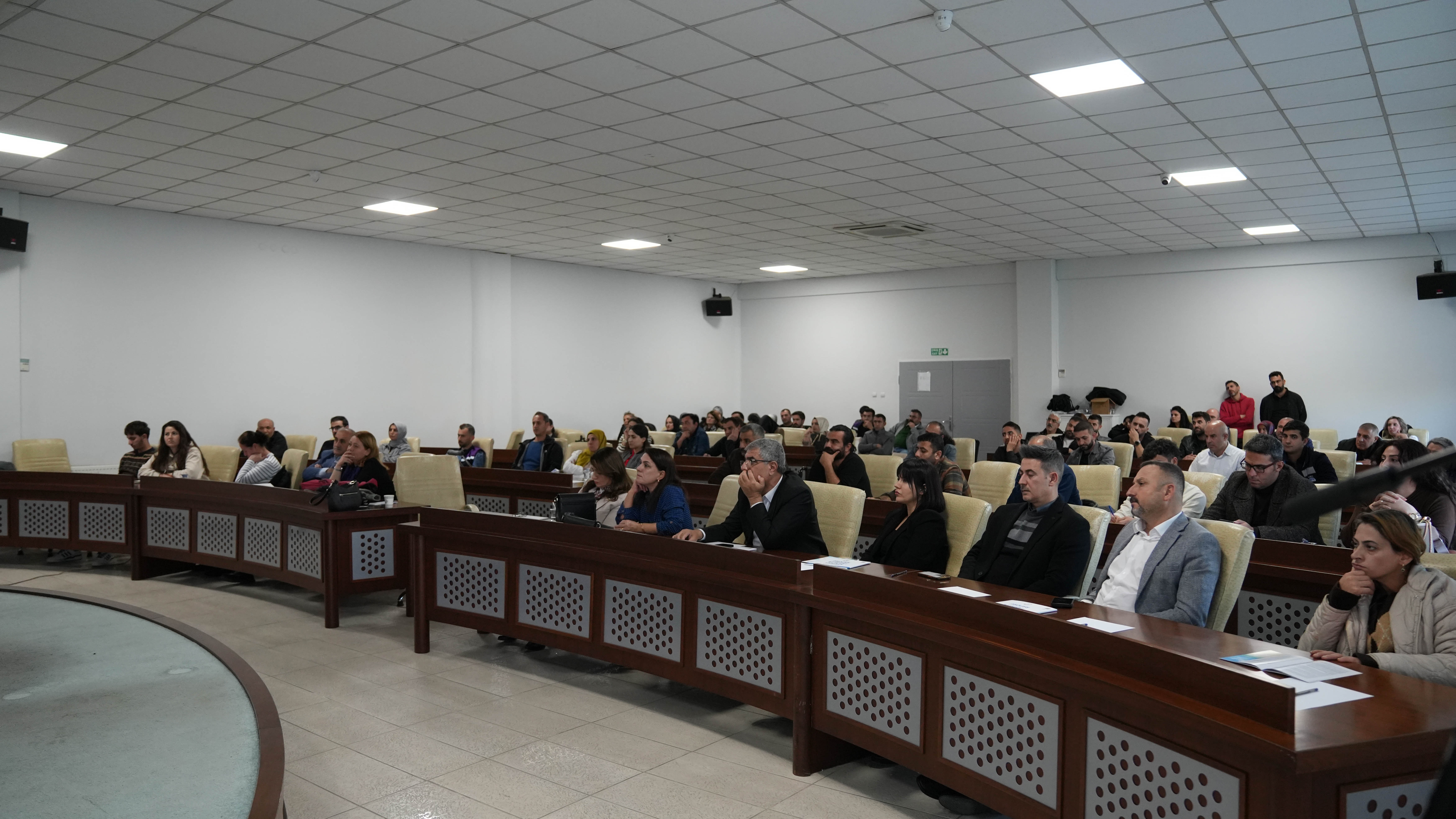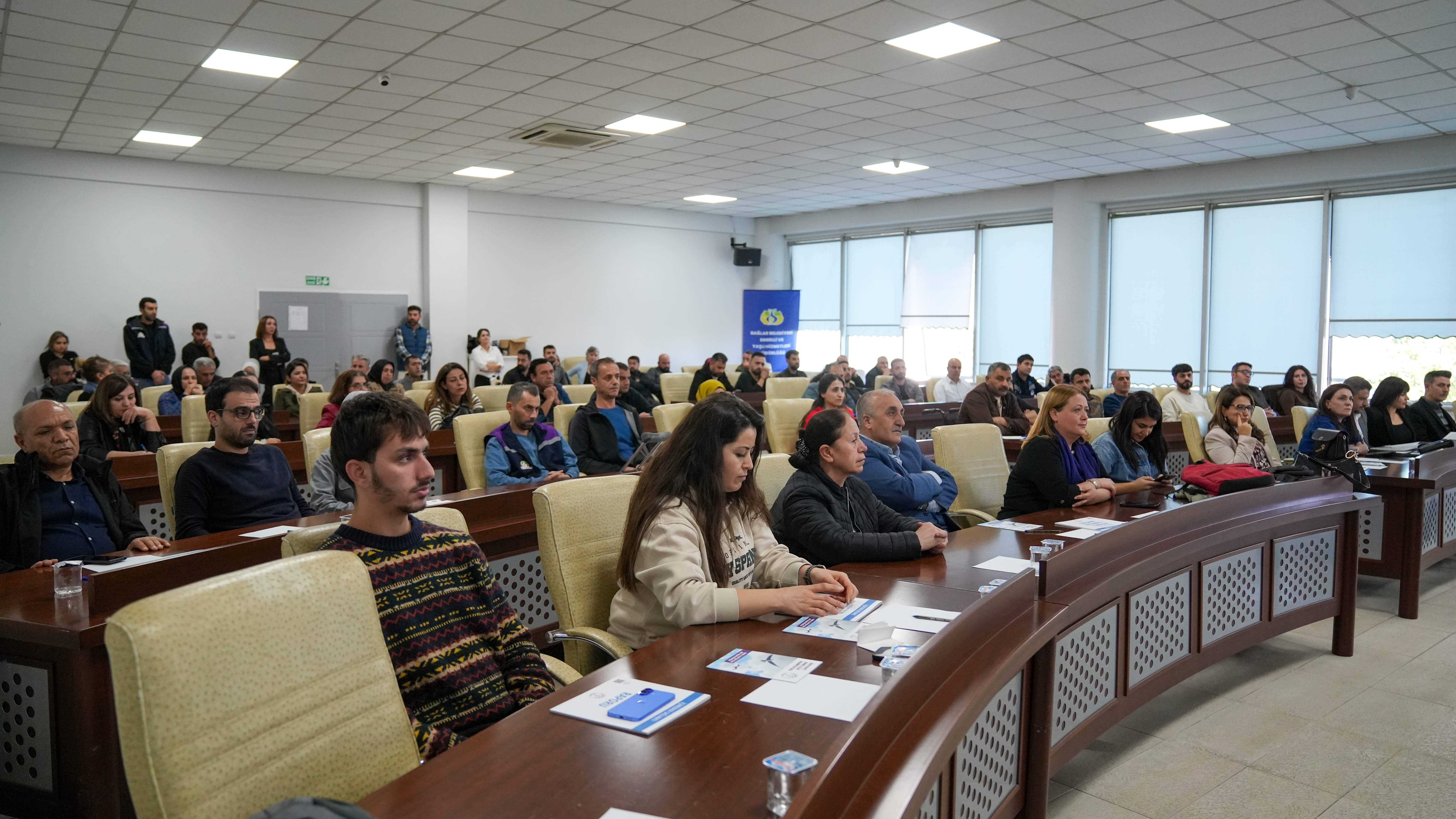 Ayaz, “Tüm çalışan arkadaşlar adına bugün burada çok büyük bir zevkle çok büyük bir şevkle dinledik arkadaşları. Gelen arkadaşlarımıza hem geldikleri için hem yaptıkları sunumları için de çok teşekkür ediyoruz. Bugün 25 Kasım vesilesiyle personellerimize yönelik böyle bir çalışmanın yapılması çok önemliydi. Genelde yaptığımız çalışmalar daha çok halkı bilinçlendirme çalışmalarıydı. Hepiniz biliyorsunuz biz bu ay meclisten bir tutum belgesi geçirdik. Kadına yönelik şiddetle mücadele alanında şimdiye kadarki çalışmalardan daha farklı olanı şimdiye kadar yayınlanan tutum belgeleri biraz daha çalışanlar üzerindendi. Ama bu dönemki tutum belgemiz Belediyenin yönetim kademesinden tutun beraber çalıştığımız firmalara, gönüllülerimize, tüm çalışanlarımız için geçerlidir. Şiddet derken sadece fiziksel şiddetten değil, ekonomik şiddete, dijital şiddete kadar şiddetin her türlüsünde kadın beyanını esas alan ve şiddet uygulayan failin, belediyeyle tüm ilişkisini kesecek bir tutum belgesi imzaladık. Hem farkındalık yaratmak açısından, hem de şiddetle mücadele açısından ve yerel yönetimler açısından çok önemli bir adım olduğuna inanıyoruz” şeklinde konuştu.