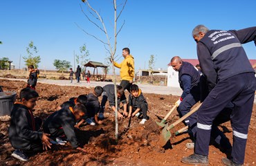 Bağlar Belediyesi Park ve Bahçeler Müdürlüğü, Sakallı ve Beykaya ilkokullarında çocuklarla birlikte fidan dikme etkinliği düzenledi.