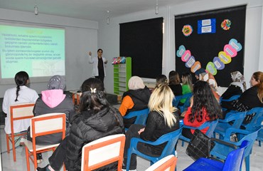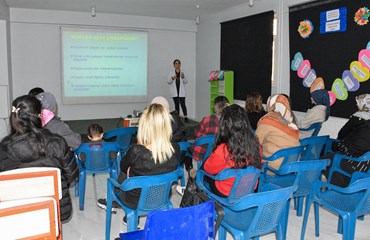 Bağlar Belediyesi Kadın Politikaları Müdürlüğü ve Sağlık Merkezi, kadınlar için aile planlaması hakkında seminer düzenledi. Sağlık Merkezi çalışanları tarafından verilen seminere, Narin Çok Amaçlı Çocuk ve Aile Merkezi'nden öğrencilerin anneleri katıldı.