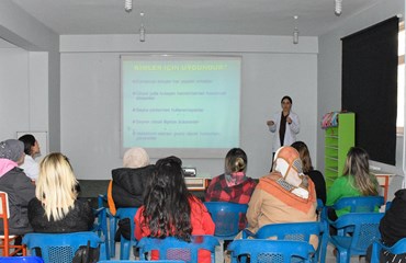 Slayt eşliğinde ve uygulamalarla seminer verilerek soru cevaplarla da desteklendi. Aile planlamasının önemi, doğum kontrol yöntemlerinin en sağlıklı şekilde nasıl uygulanacağı, kadın ve çocukların sağlığı, sağlıklı gebelik gibi birçok başlıkta bilgilendirme yapıldı.