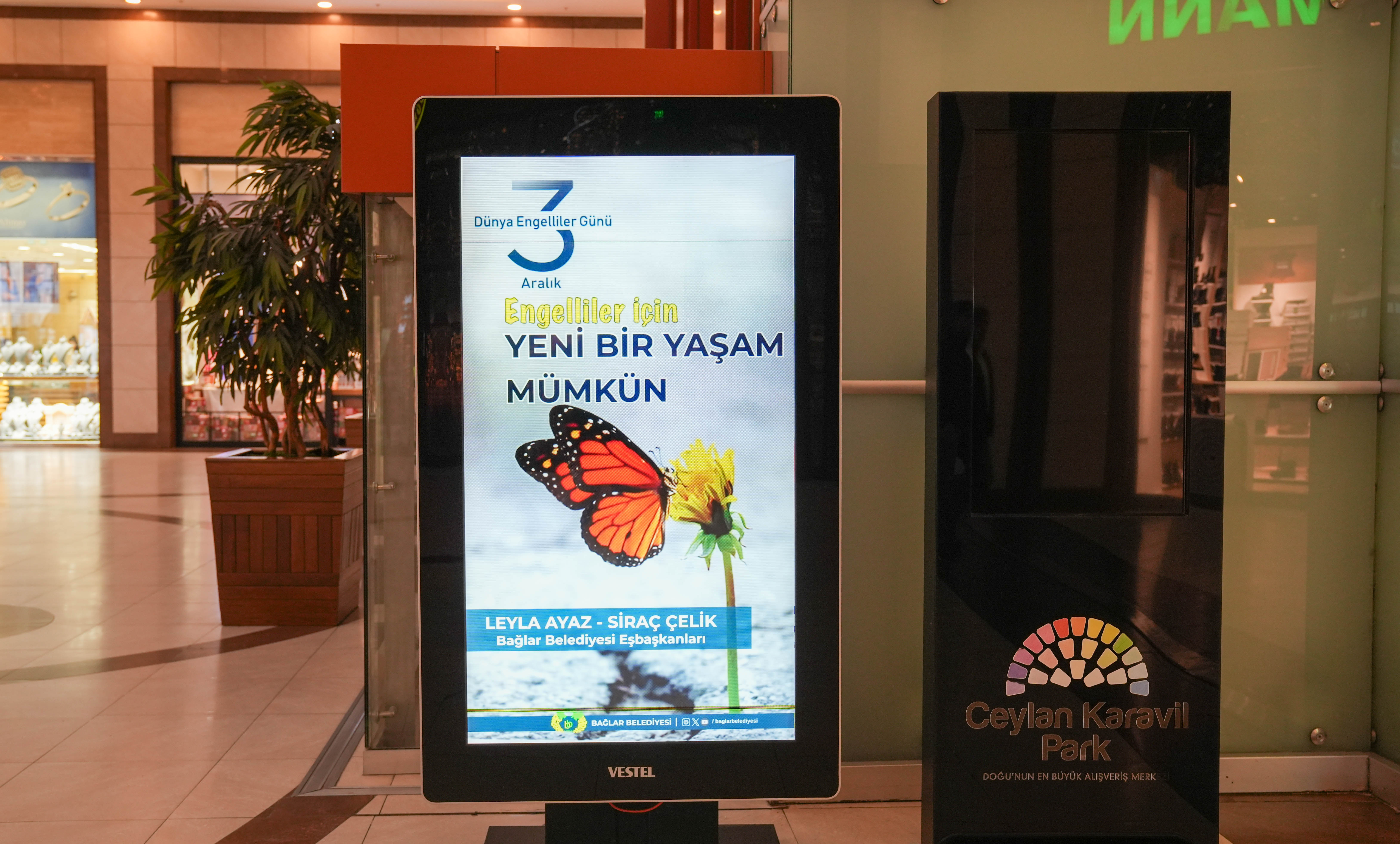 Bağlar Belediyesi Engelli ve Yaşlı Hizmetleri Müdürlüğü, “Engelliler İçin Yeni Bir Yaşam Mümkün” sloganıyla farkındalık çalışmalarına devam ediyor. 3 Aralık Dünya Engelliler Günü çalışmaları kapsamında AVM’lerde ve duraklarda afiş, bilboard çalışması yaptı.