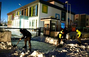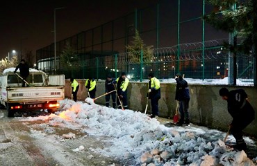 4 ayrı koldan çalışmaları yürüten gece ekipleri, tüm okul yollarını sabah için hazır etti. Sadece okula çıkan yollar değil kaldırımlar, kapı girişleri, bahçeler de temizlendi.