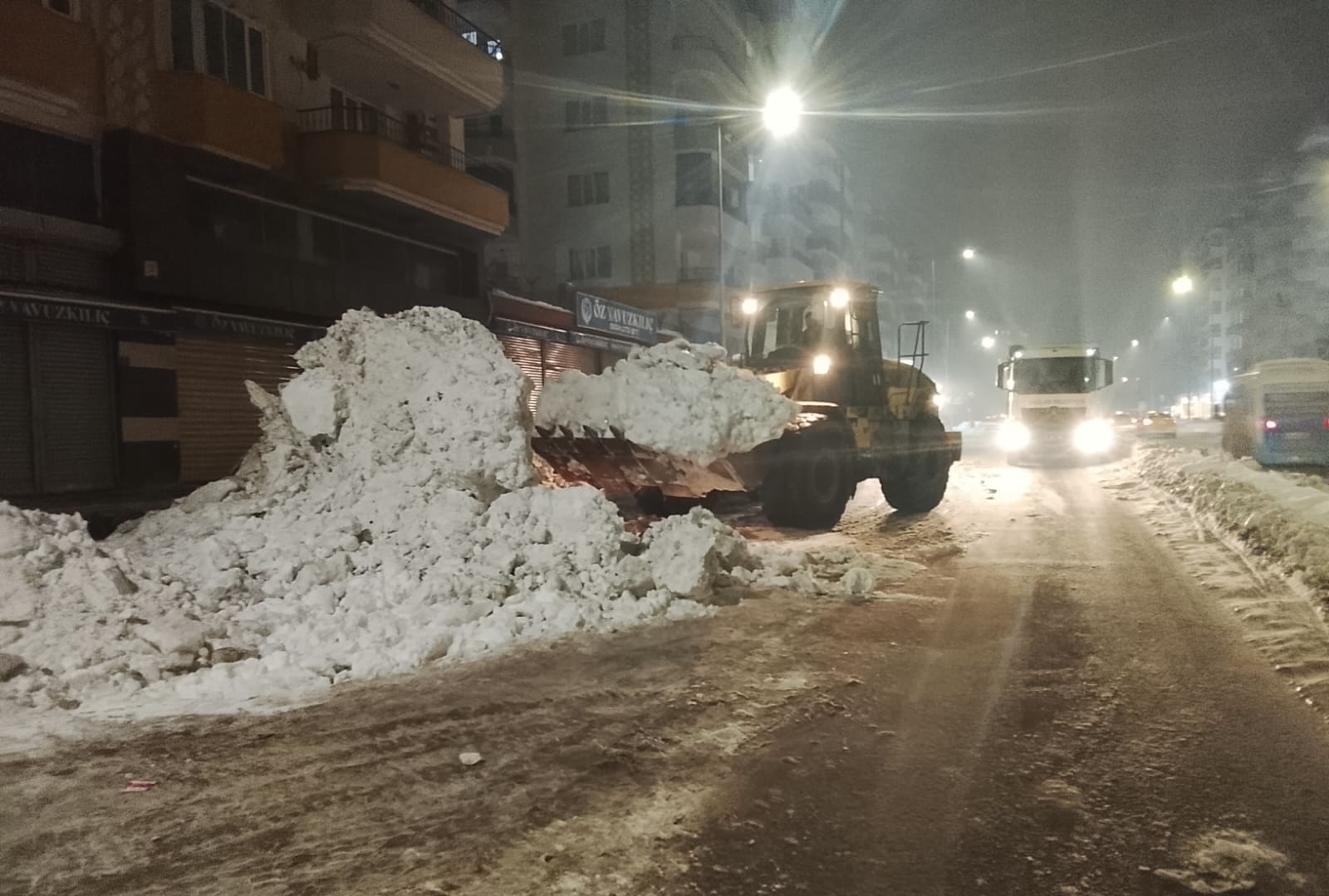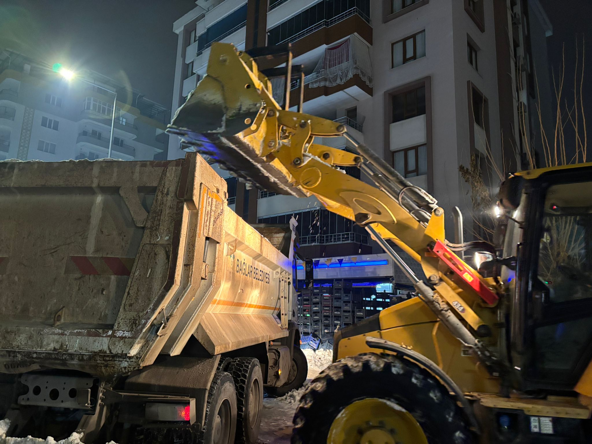 Bağlar Belediyesi Fen İşleri Müdürlüğüne bağlı ekipler, ulaşıman aksamaması için gece ekipleriyle birlikte kar kaldırma çalışması yürüttü.