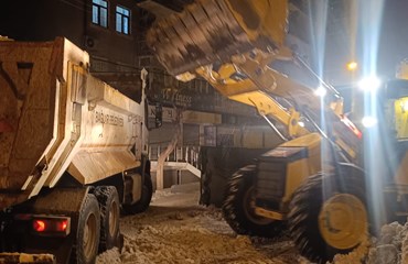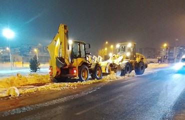 6 kamyon, 1 loder, 2 kepçe ile gece çalışma yürüten ekipler, kar kaldırma işlemi ile ulaşımın daha rahat ve sağlıklı devam etmesini sağladı.