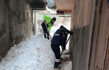 Bağlar Belediyesi Temizlik Müdürlüğüne bağlı ekipler, Eski Bağlar'ın mahallelerinde ara sokaklarda ulaşımın aksamaması için çalışmalarına devam ediyor.