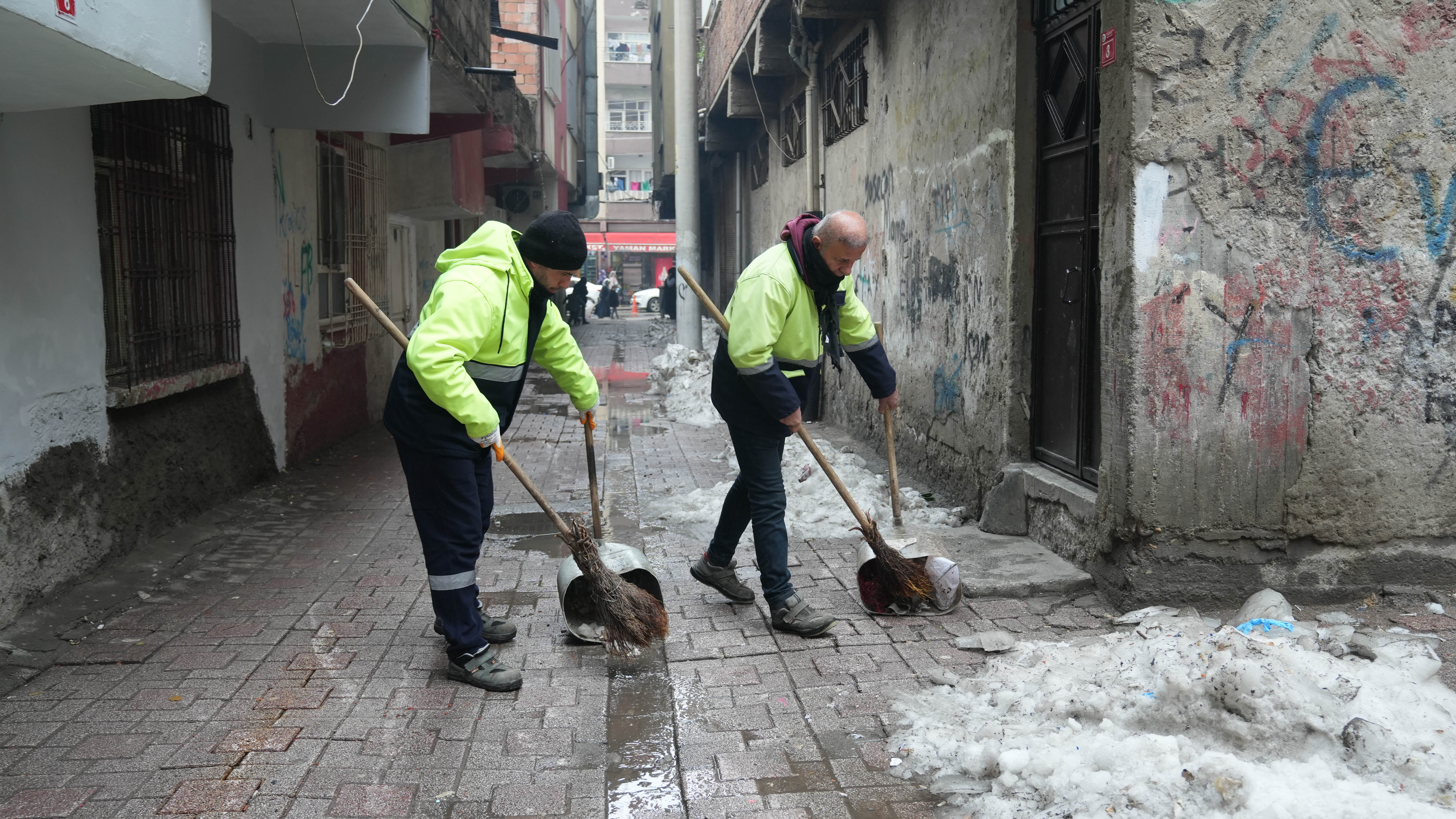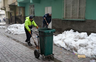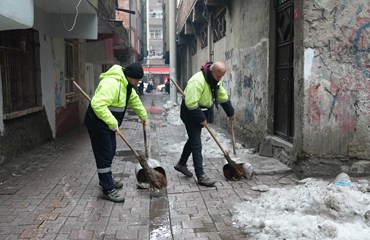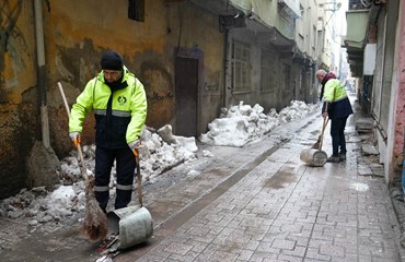 Bağlar Belediyesi Temizlik İşleri Müdürlüğüne bağlı ekipler, gece gündüz devam eden kar çalışmalarının ardından mahallelerde temizlik çalışmalarını hızlandırdı.
