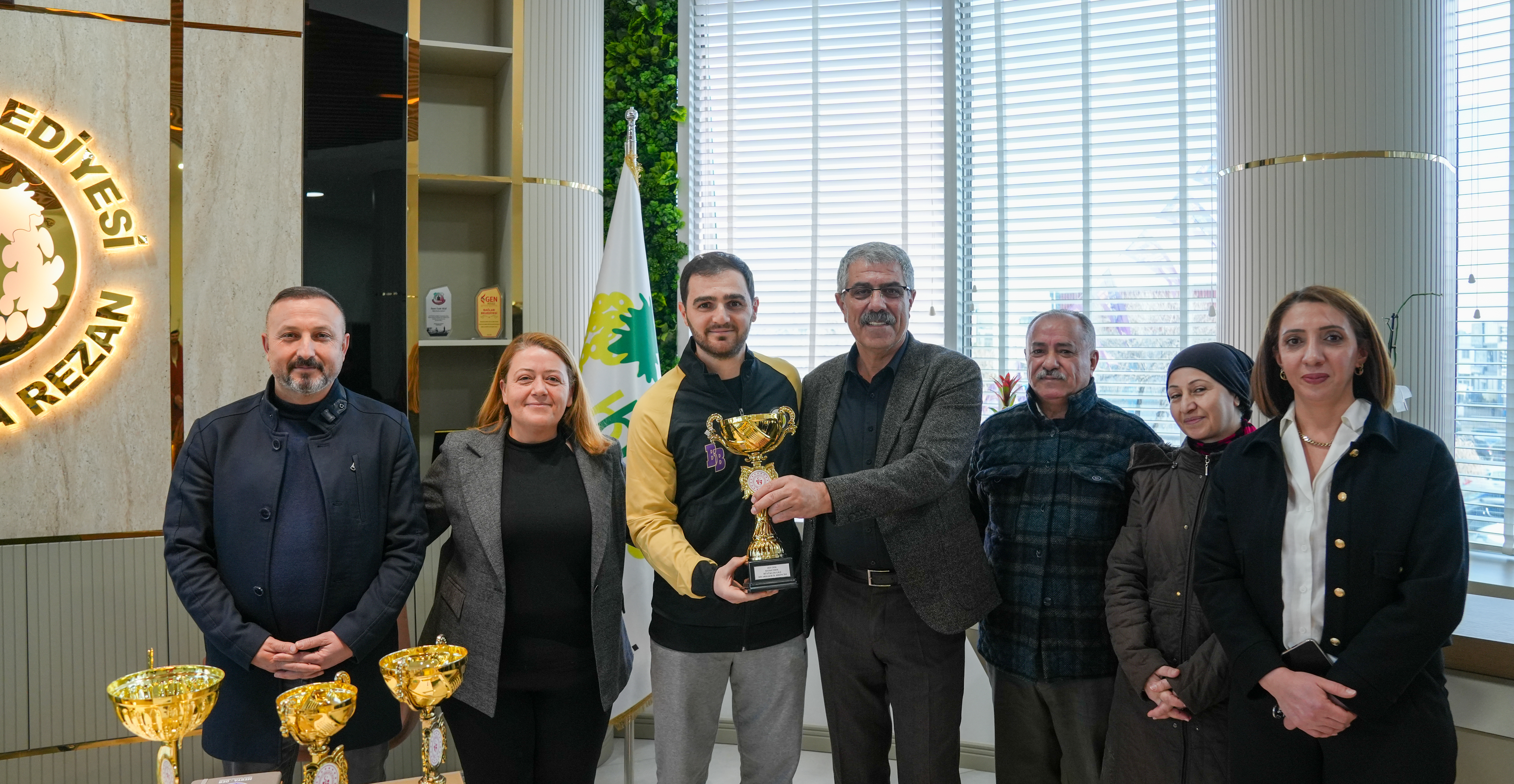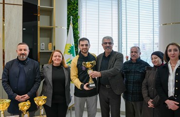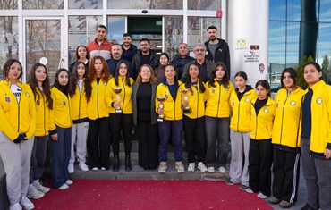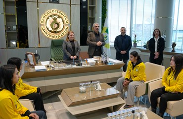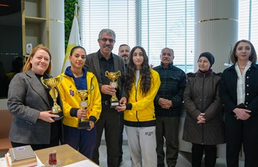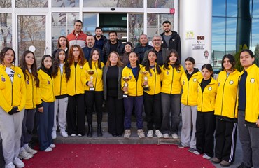 Büyük başarılara imza atan sporcular kupalarıyla birlikte Eşbaşkanlar Leyla Ayaz ve Siraç Çelik’i ziyaret etti.