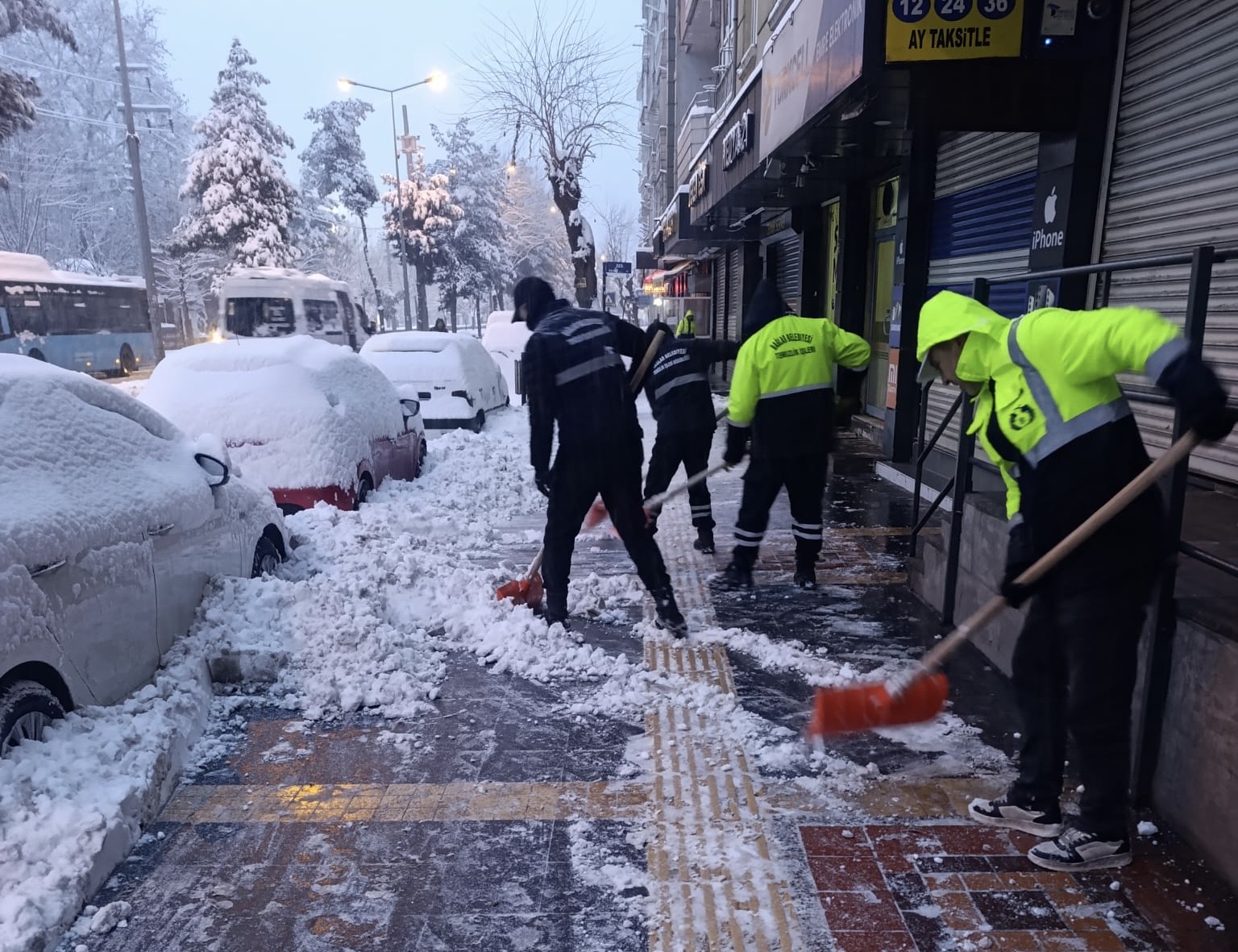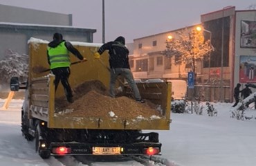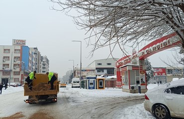 Fen İşleri Müdürlüğü, 52 kişilik ekiple 2 çift kabinli pikap, 3 pikap, 2 greyder, 2 loder, 2 kar küreme kamyonu, 3 kepçe, 14 kamyonlar sahada. Ekipler, ana yollar, caddeler, sokaklarda ve kırsal mahallerde yol açma, kar küreme, tuzlama çalışması yürütüyor.