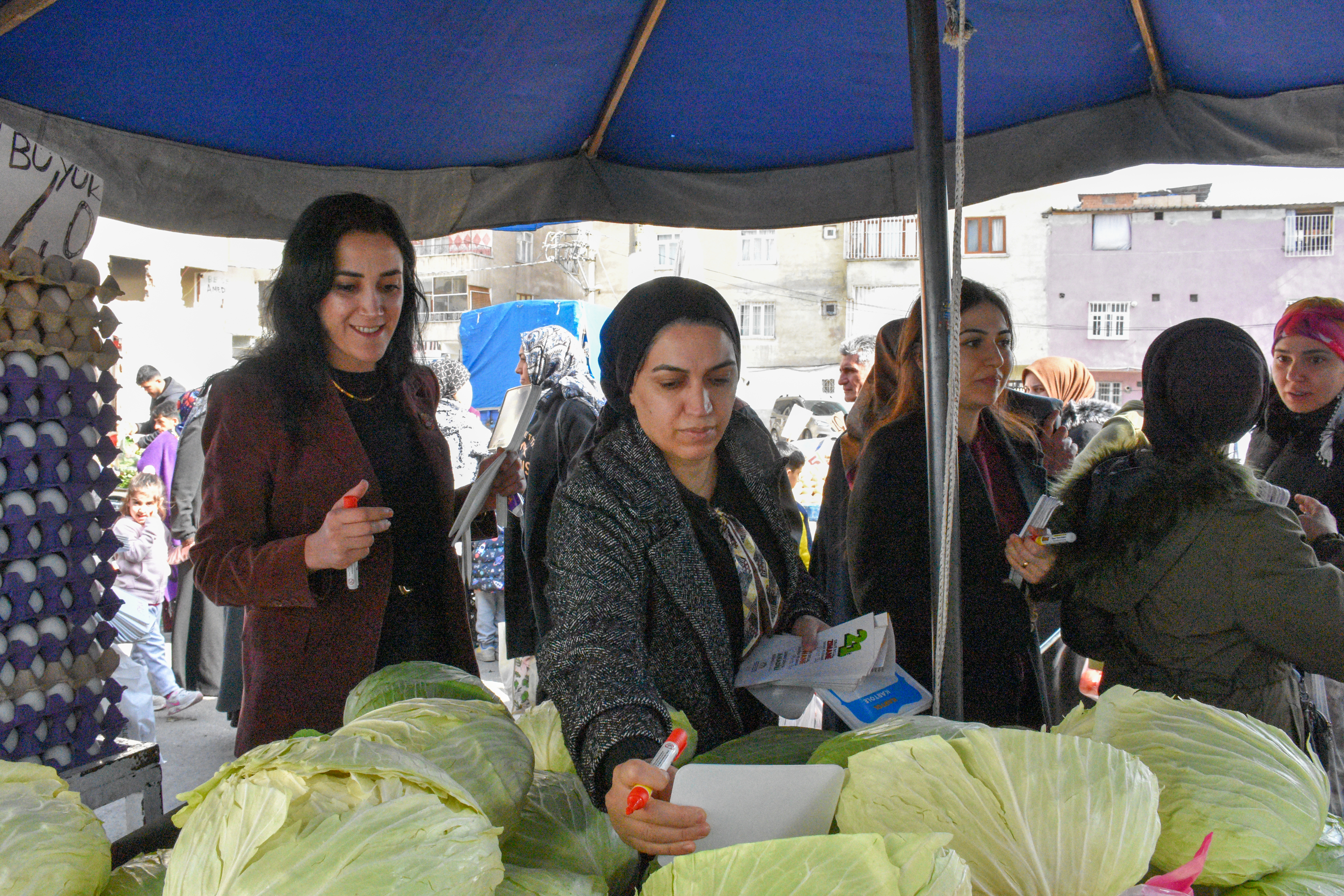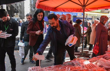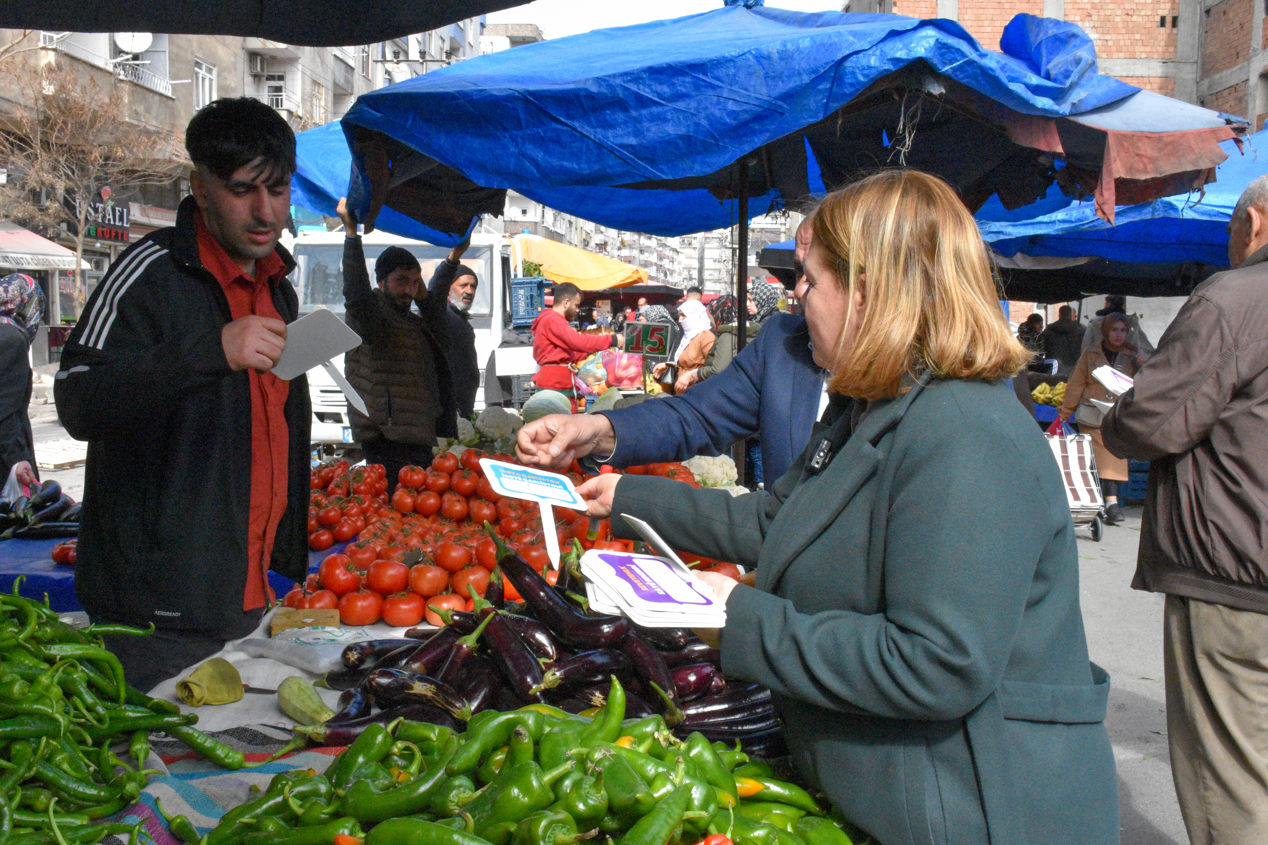 Bağlar Belediyesi Eşbaşkanı Leyla Ayaz 21 Şubat Dünya Anadil Günü çalışmaları kapsamında pazar esnafını ziyaret ederek anadilin önemine dikkat çekti.