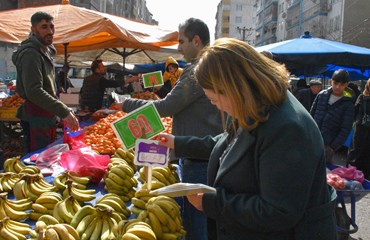 Eşbaşkan Ayaz, ana dilin yaşamın her alanında yer alması gerektiğine dikkat çekerek, sebze meyvelerin Kürtçe isimlerini bulunduğu etiketler paylaştı. Esnaf da ziyaretten duyduğu memnuniyeti dile getirdi.