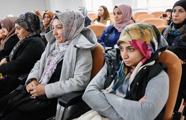 Ayaz’ın konuşmasının ardından kurum psikoloğu 8 Mart’ın tarihçesi, anlam ve önemine ilişkin bir sunum yaptı. Eşitsizlik, şiddet, güvencesizlik, cezasızlık politikalarına dikkat çekilerek, eşitsizliğin sadece fiziksel mekanlarla sınırlı olmadığı dijital alanında şiddetin yeni yüzlerinde biri haline geldiği vurgulandı. “Kadın bedeni üzerinden kurulan tahakküm yalnızca bireysel bir sorun değil, sistematik bir sorun biçimidir” denildi. Savaş süreçlerinde kadın bedeninin sistemli biçimde hedef alındığına dikkat çekilerek, cinsel şiddetin bir savaş yöntemi olarak kullanıldığına vurgu yapıldı.