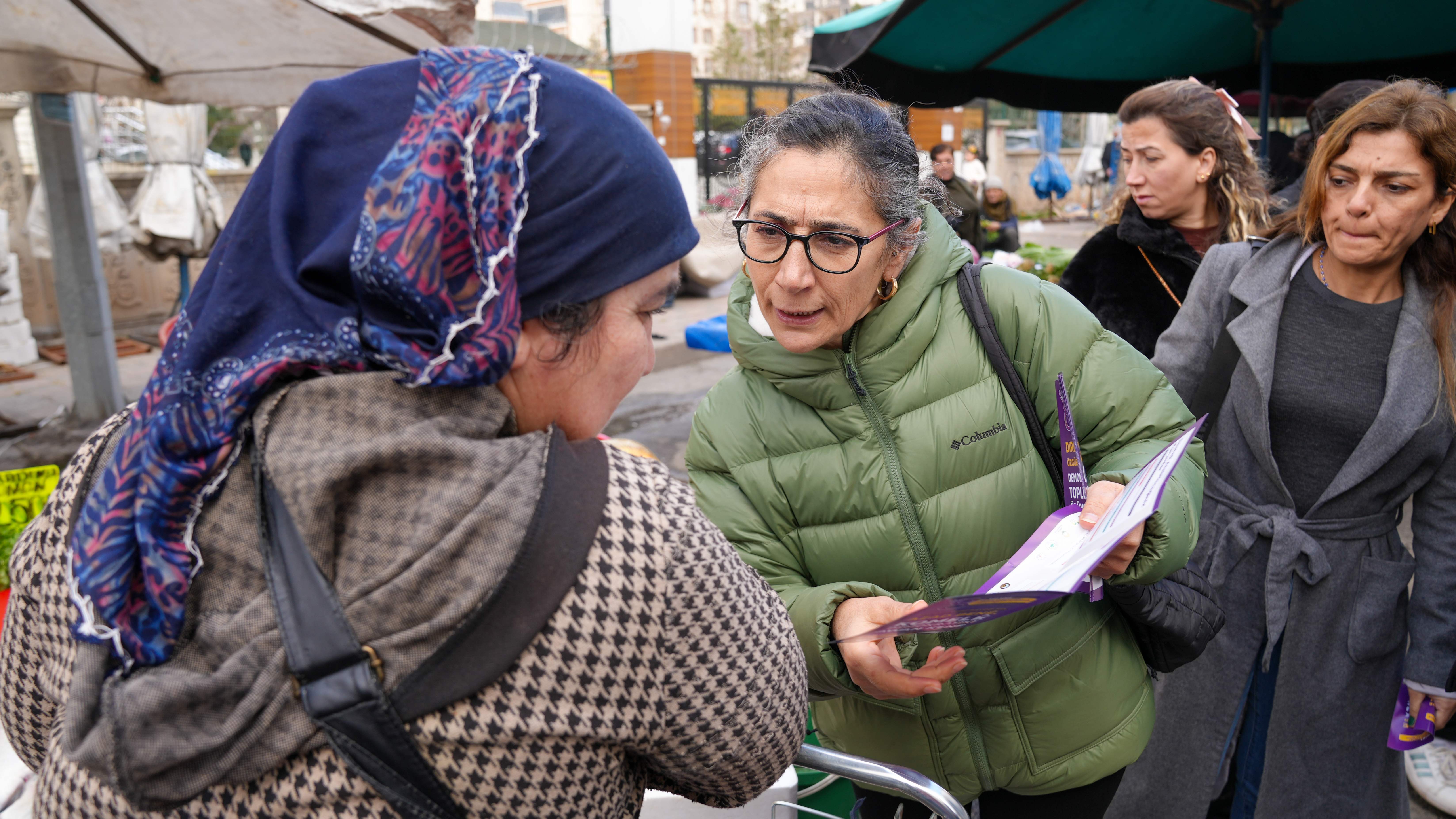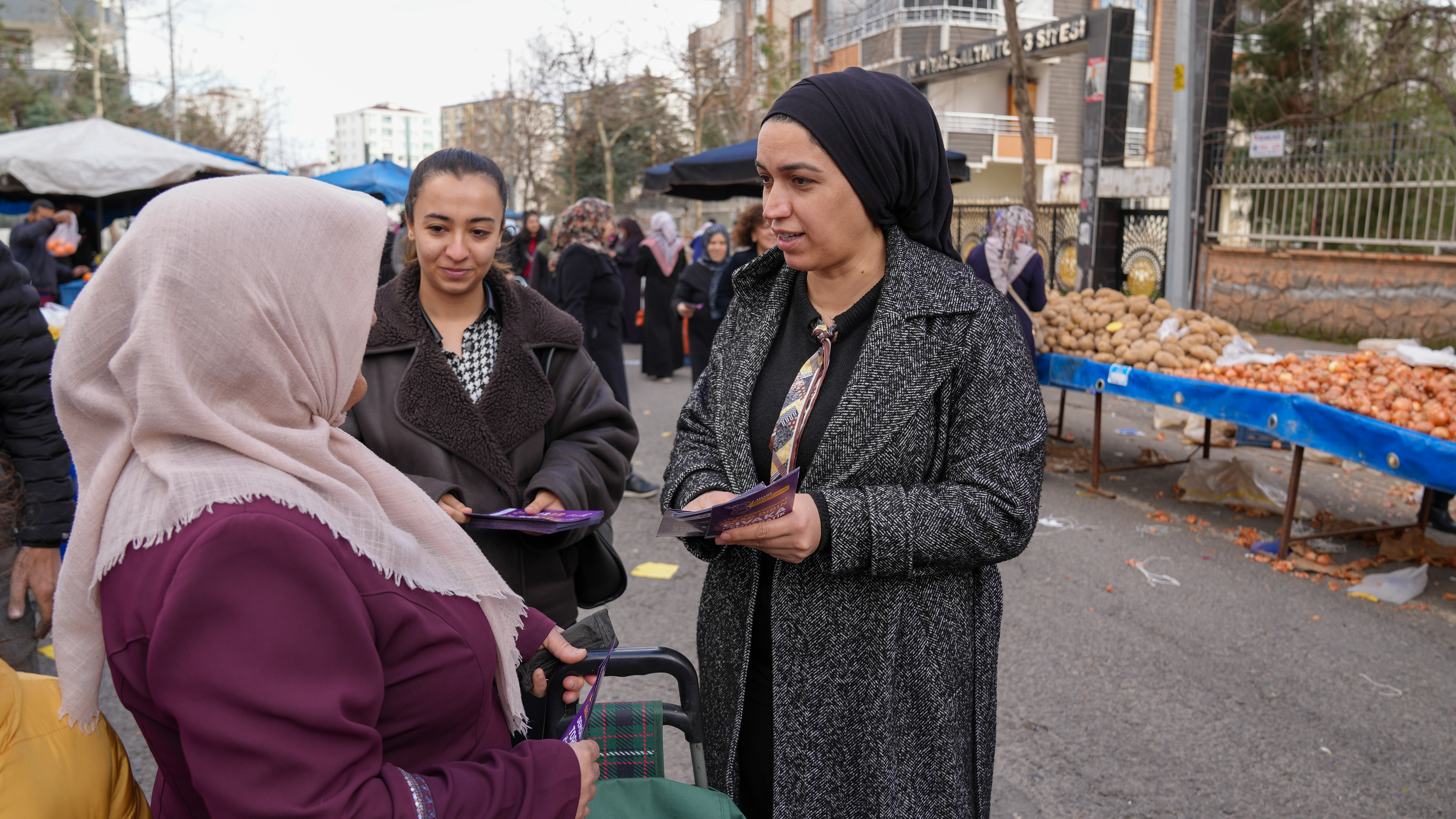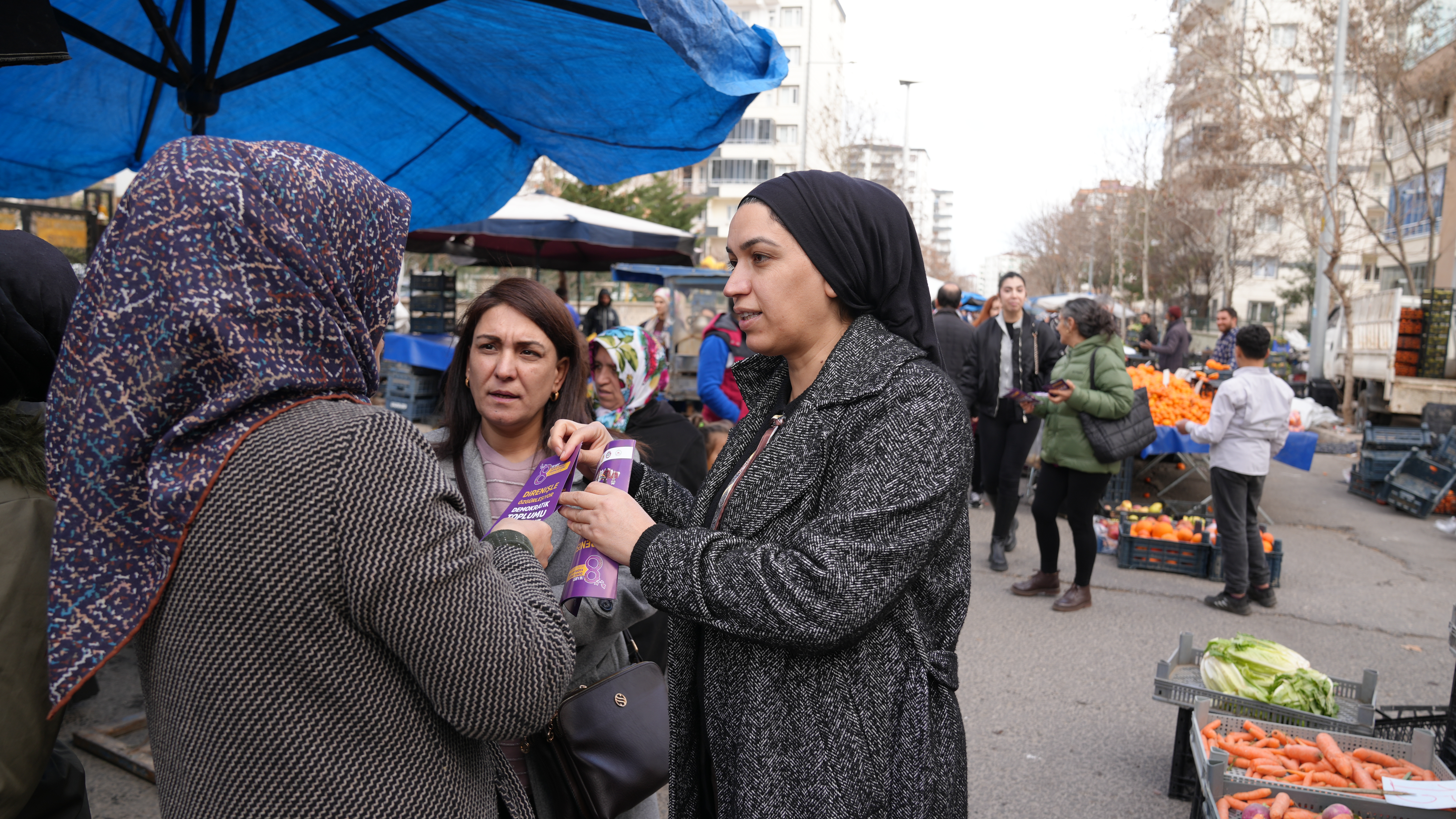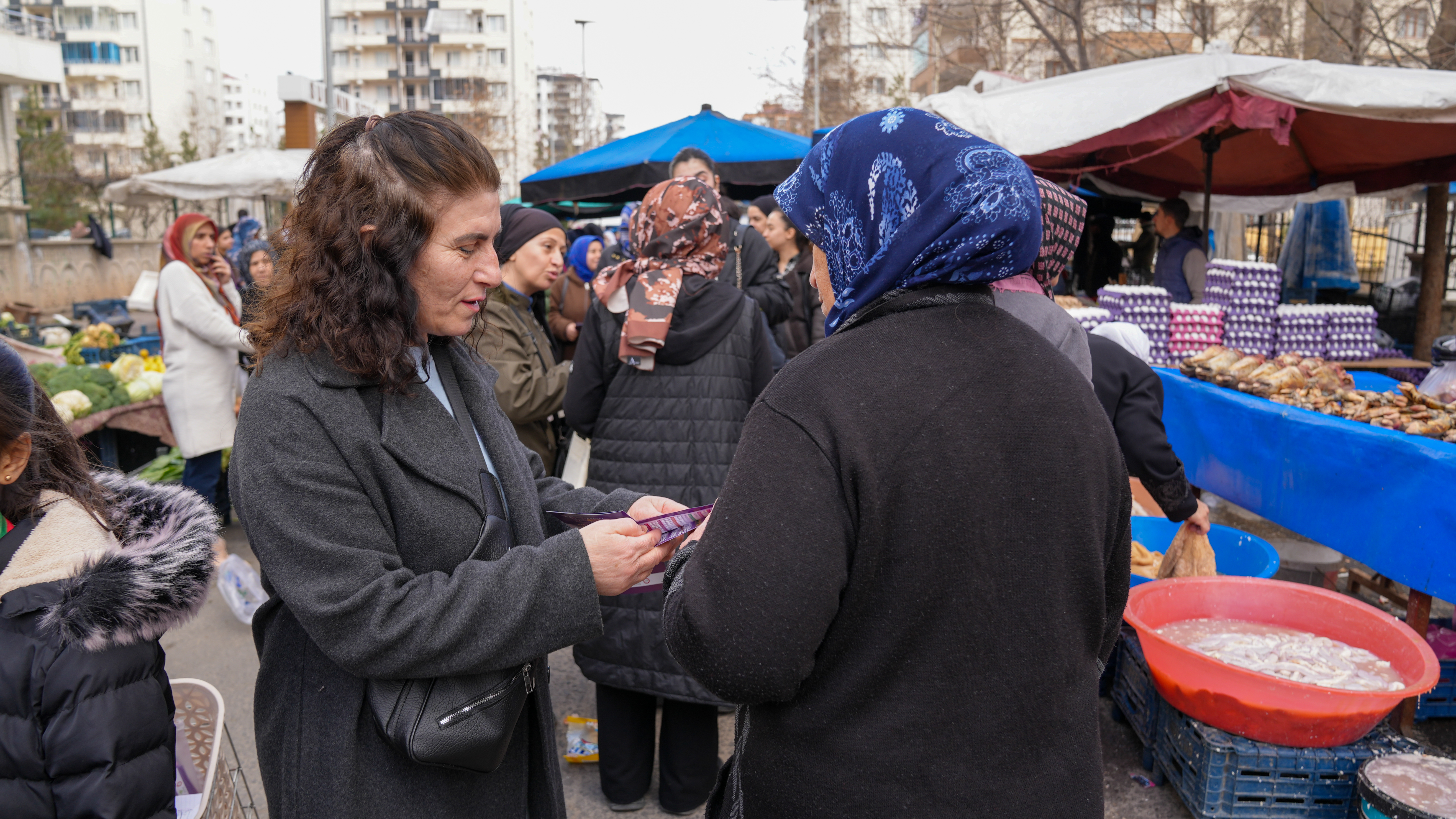 Bağlar Belediyesi Kadın Politikaları Müdürlüğü, 8 Mart çalışmaları kapsamında pazarda kadınara ulaşarak broşür dağıttı.