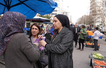 Bağlar Belediyesi, kadına yönelik şiddetin, emek sömürüsünün son bulduğu, eşit, özgür, demokratik ve barış içinde bir yaşam için 8 Mart Dünya Emekçi Kadınlar Günü çalışmalarına devam ediyor. Kadın Politikaları Müdürlüğü bu kapsamda kadınlara ulaşıyor. Müdürlük emekçileri ve Meclis üyeleri “Direnişle özgürleşiyor demokratik toplumu örüyoruz” sloganıyla çalışma yaptı. Bağcılar Mahallesi semt pazarında, kadınlara şiddete karşı başvuru mekanizmaları ve kurumların bilgilerinin bulunduğu broşürler dağıtıldı. Kadına yönelik şiddete karşı dayanışmayı büyütme çağrısı yapıldı.