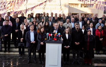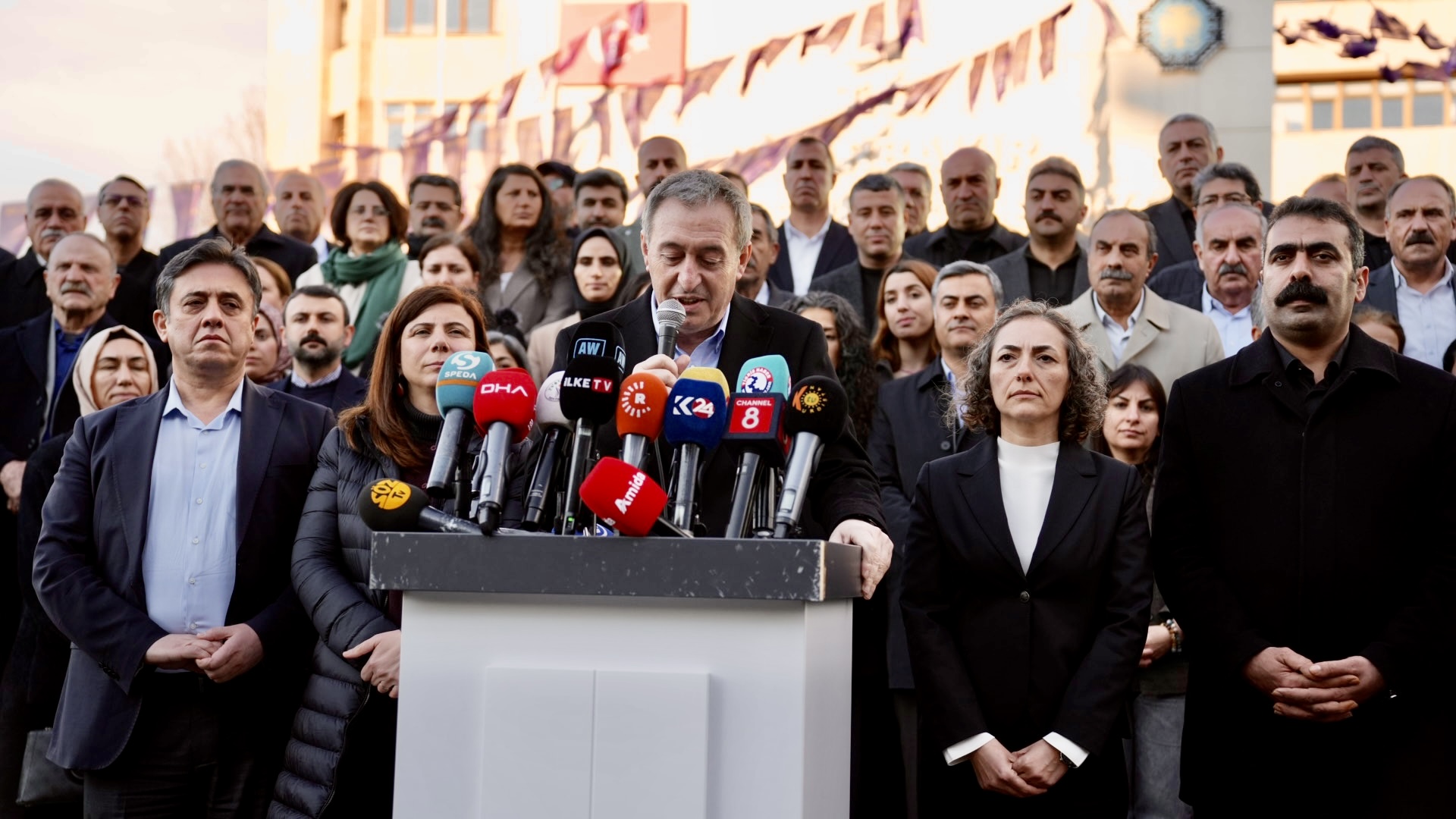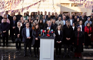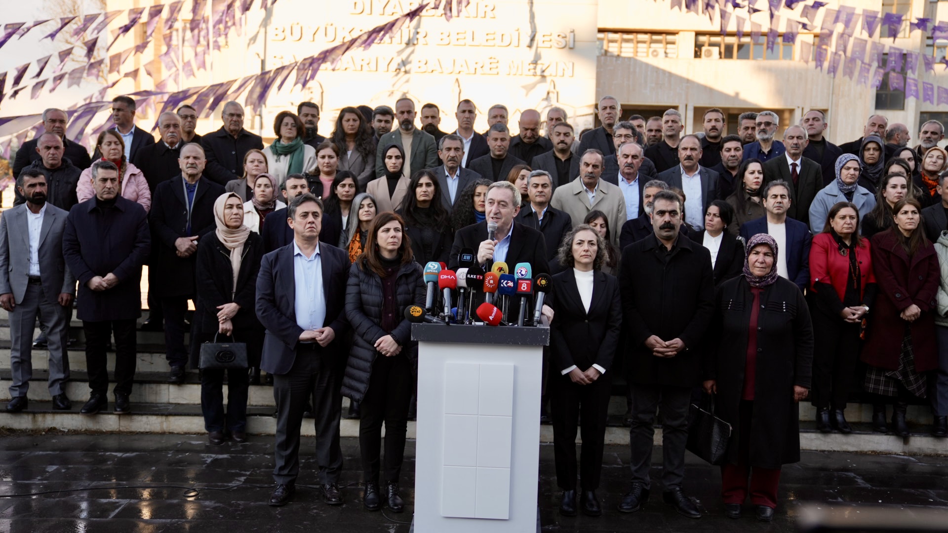 Diyarbakır Büyükşehir Belediyesi önünde DEM Partili il ve ilçe belediye başkanları ile birlikte yapılan açıklamada konuşan DEM Parti Eş Genel Başkanı Tuncer Bakırhan, kayyım atamalarının “halk iradesinin gaspı” olduğunu belirterek, kayyım atanan 13 belediyede eşbaşkanların görevlerine iade edilmesi çağrısında bulundu.