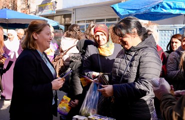 Bağlar Belediyesi Kadın Politikaları Müdürlüğü 8 Mart Dünya Kadınlar Günü çalışmaları kapsamında Körhat Mahallesi semt pazarında kadınlarla bir araya geldi. Çalışmaya Eşbaşkan Leyla Ayaz, belediye meclis üyeleri ve müdürlük çalışanı kadınlar katıldı. Pazarda broşür dağıtan Eşbaşkan Ayaz, 8 Mart etkinliklerine katılım çağrısı yaptı.