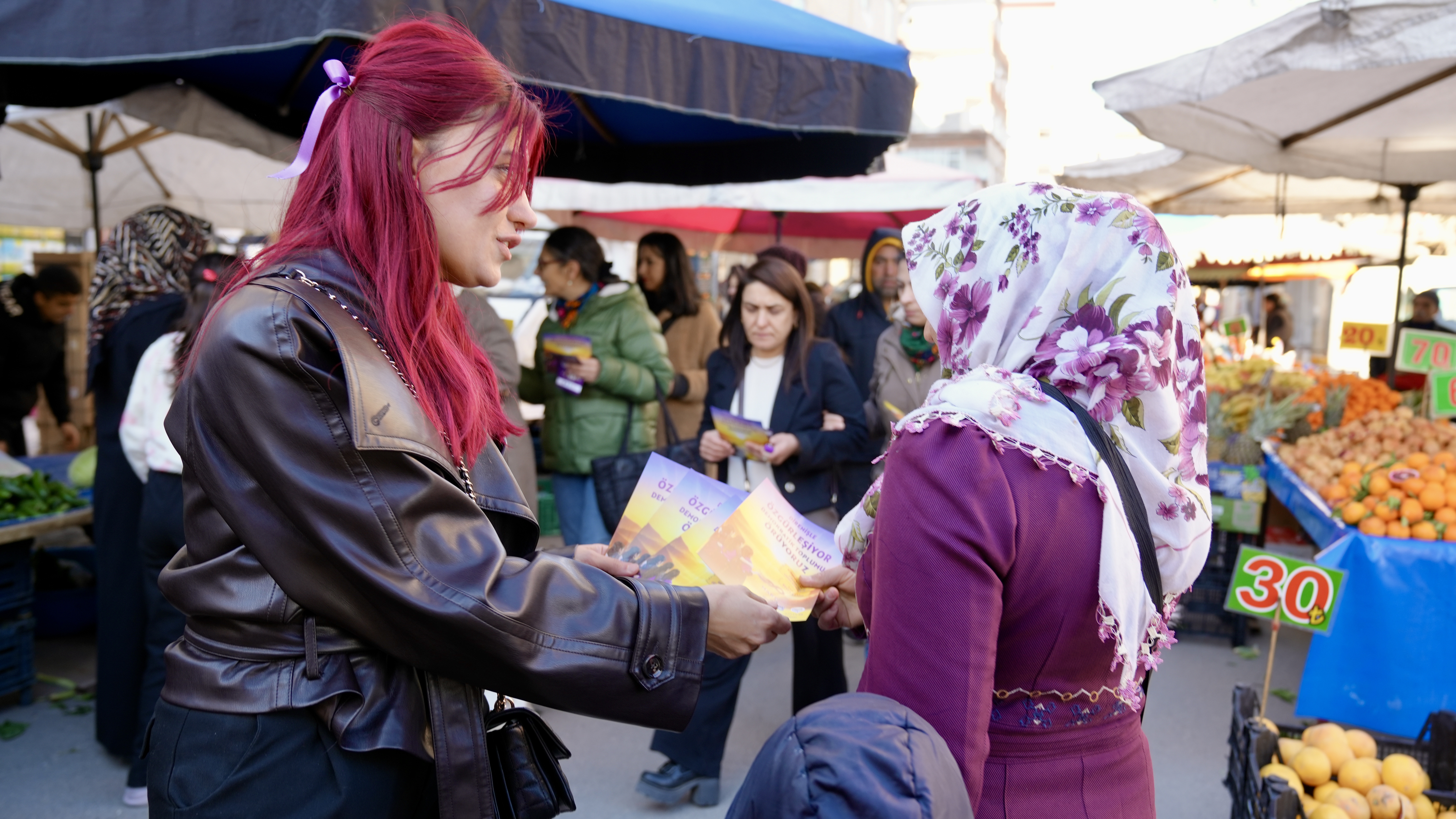 Ayrıca kadına yönelik şiddete karşı başvuru mekanizmaları ile ilgili kurum ve iletişim bilgilerine yer verilen broşürler de paylaşıldı.