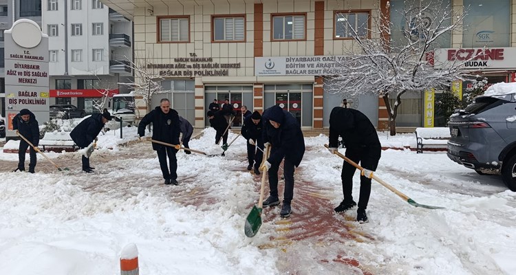 Bağlar Belediyesi ekipleri kar küreme ve tuzlama çalışmalarıyla ulaşımı sağlıyor