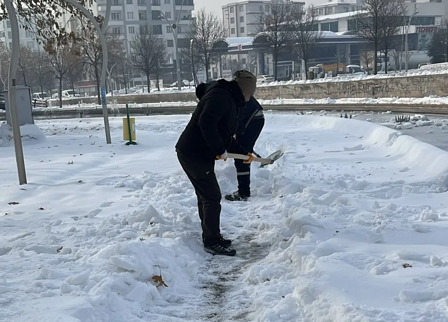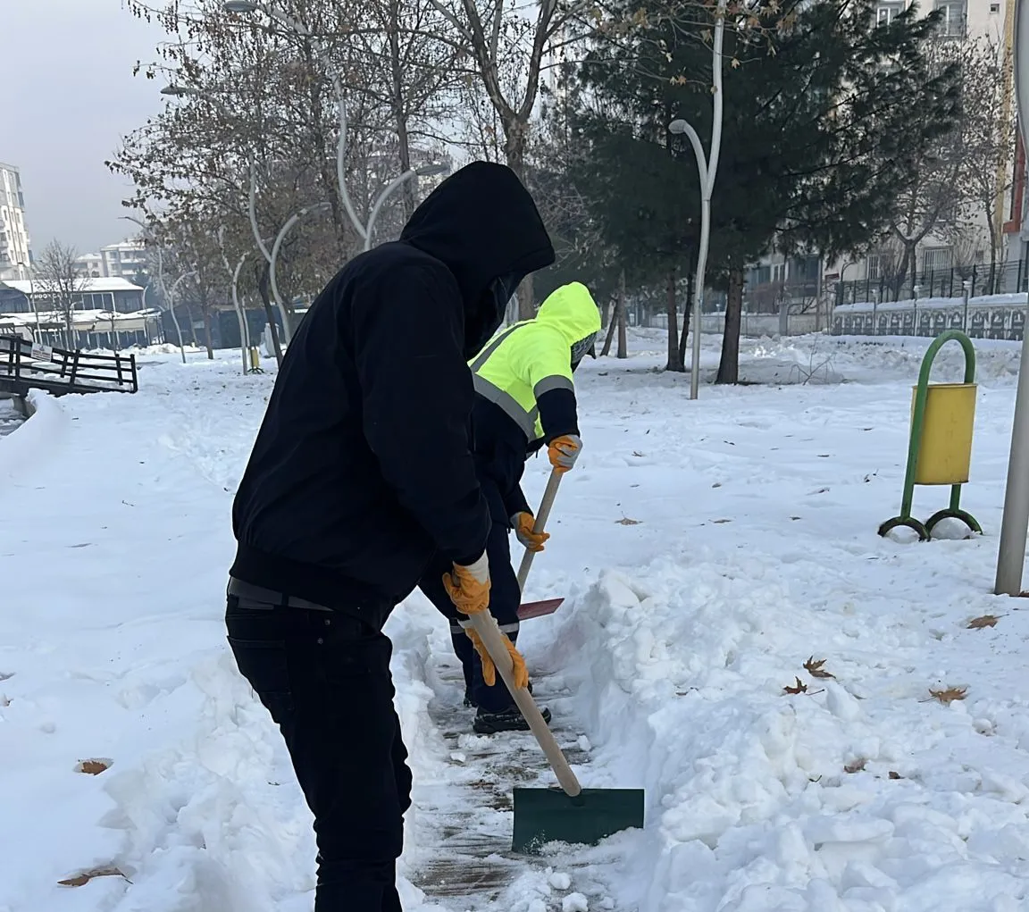 Park ve Bahçeler Müdürlüğüne bağlı ekipler de parklarda yürüyüşün rahatlıkla sağlanması için kar temizleme çalışması yapıyor. Ekipler bu kapsamda Diyala, Göletli ve Rihan parklarında kar temizleme ve yol açma çalışması yaptı.