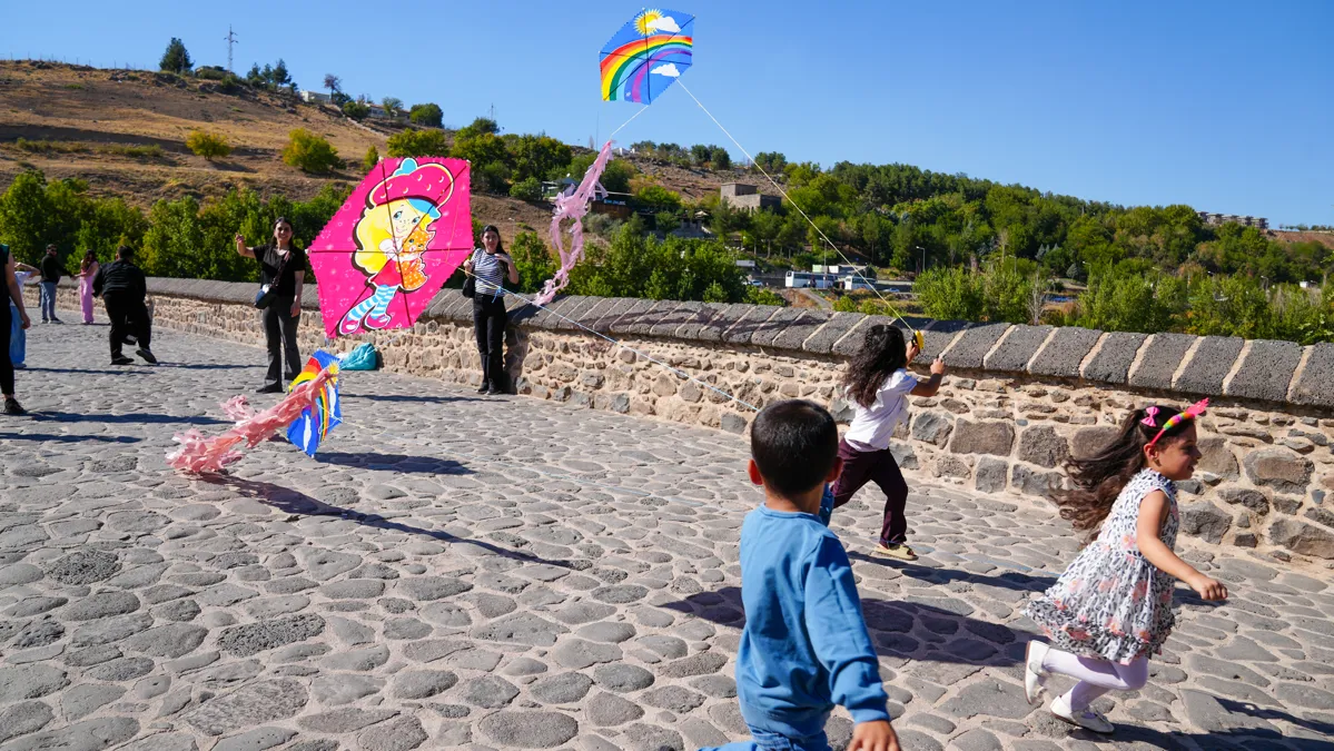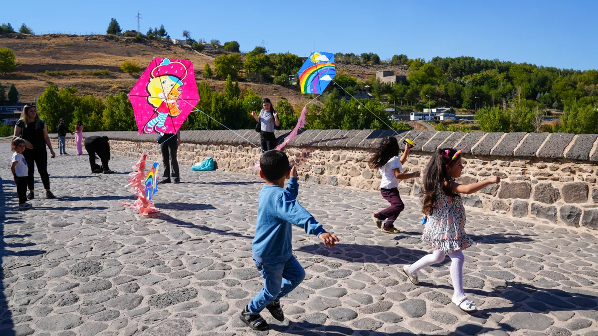Bağlar Belediyesi çocuklar için çalışmalarına devam ediyor. Çocuklar, Dünya Çocuk Günü dolayısıyla tarihi On Gözlü Köprü'de uçurtma uçurdu.