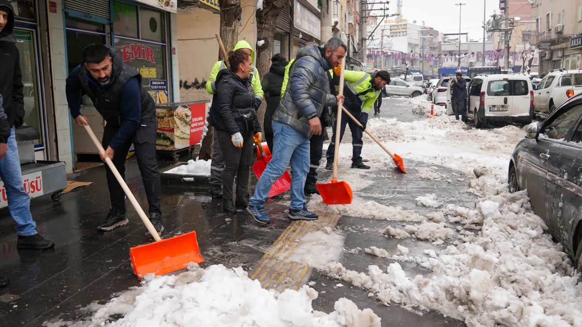 Bağlar Belediyesi Kadın Politikaları Müdürlüğü öncülüğünde kolektif kar çalışması yürütültü. Kaldırımlar, kadın emeği ve kolektif bir ruhla temizlenerek ulaşıma güvenli hale getirildi.