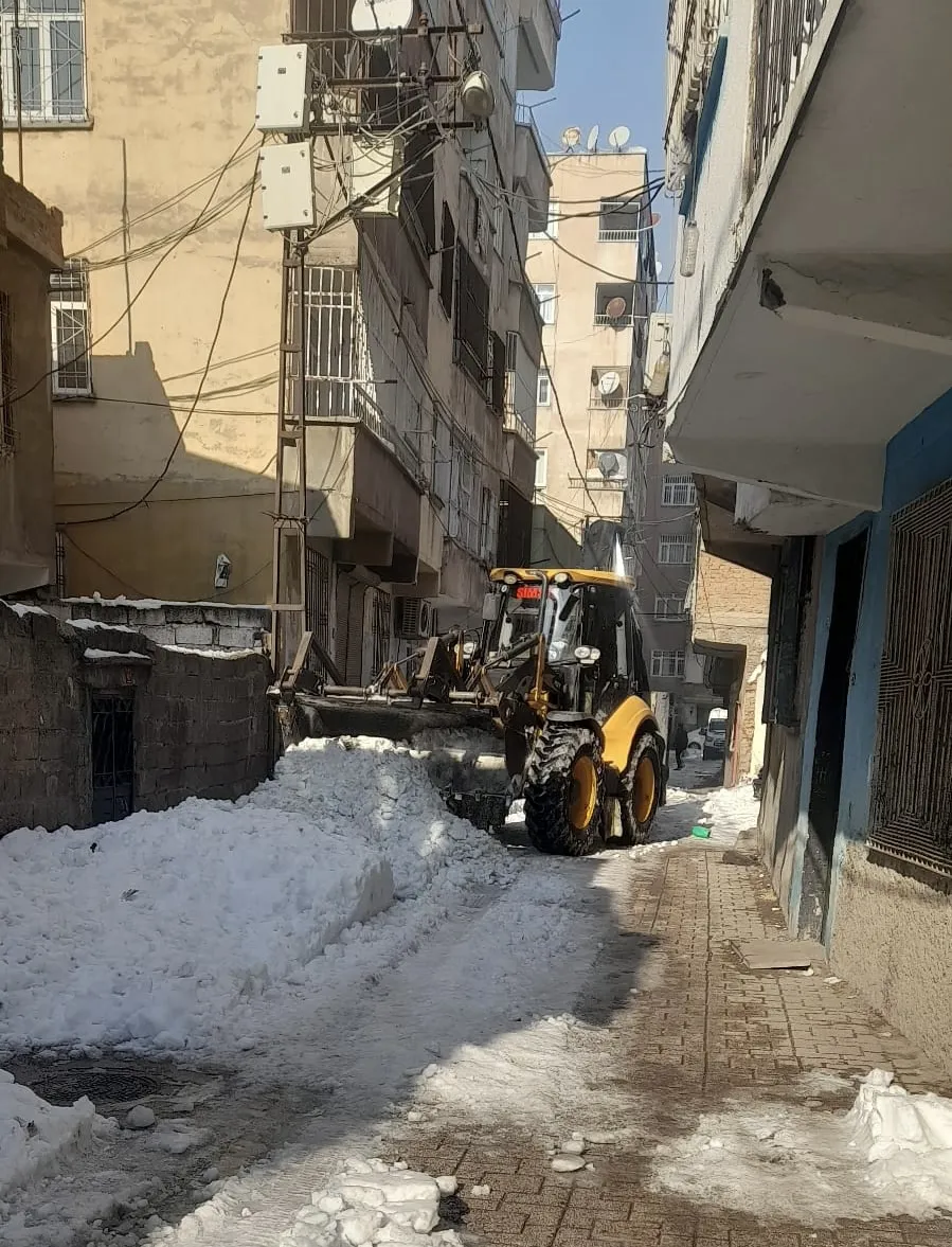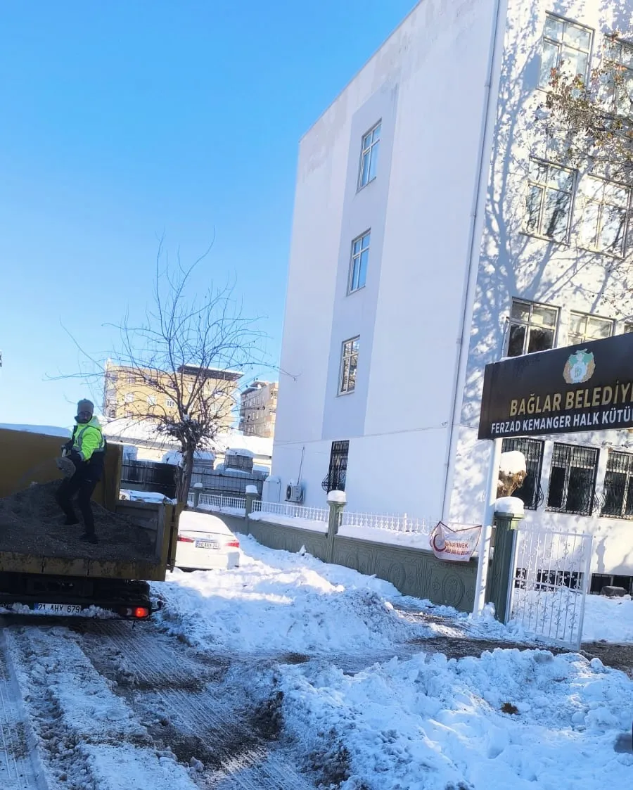 Bağlar Belediyesi’nin 250 kişilik ekibi,  kepçe, kar küreme, pikap, kamyon, tuzlama aracı, greyderlele ulaşımın güvenliği için sahada.